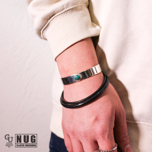 キングマンターコイズ シルバー ハンドメイドスタンプバングル #9