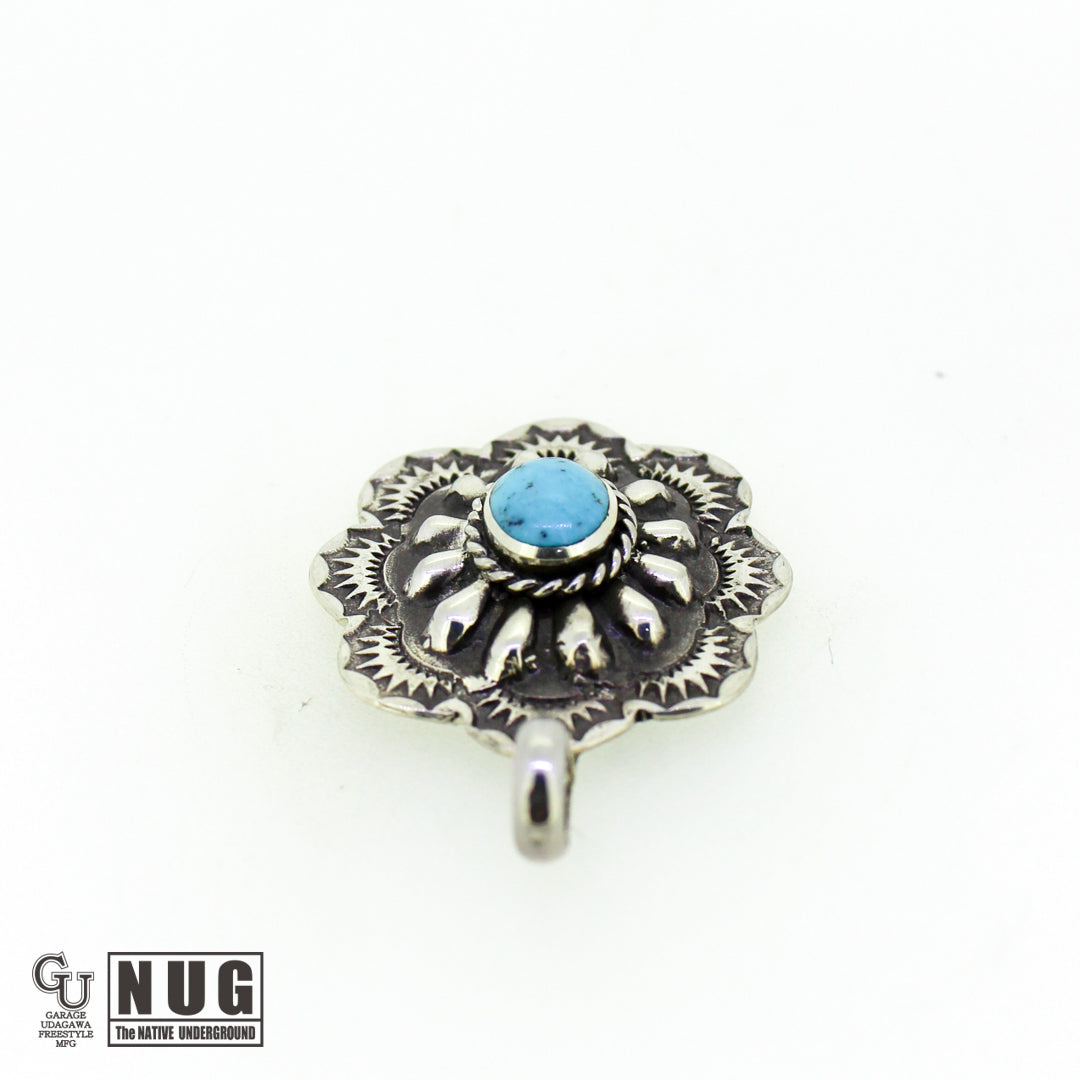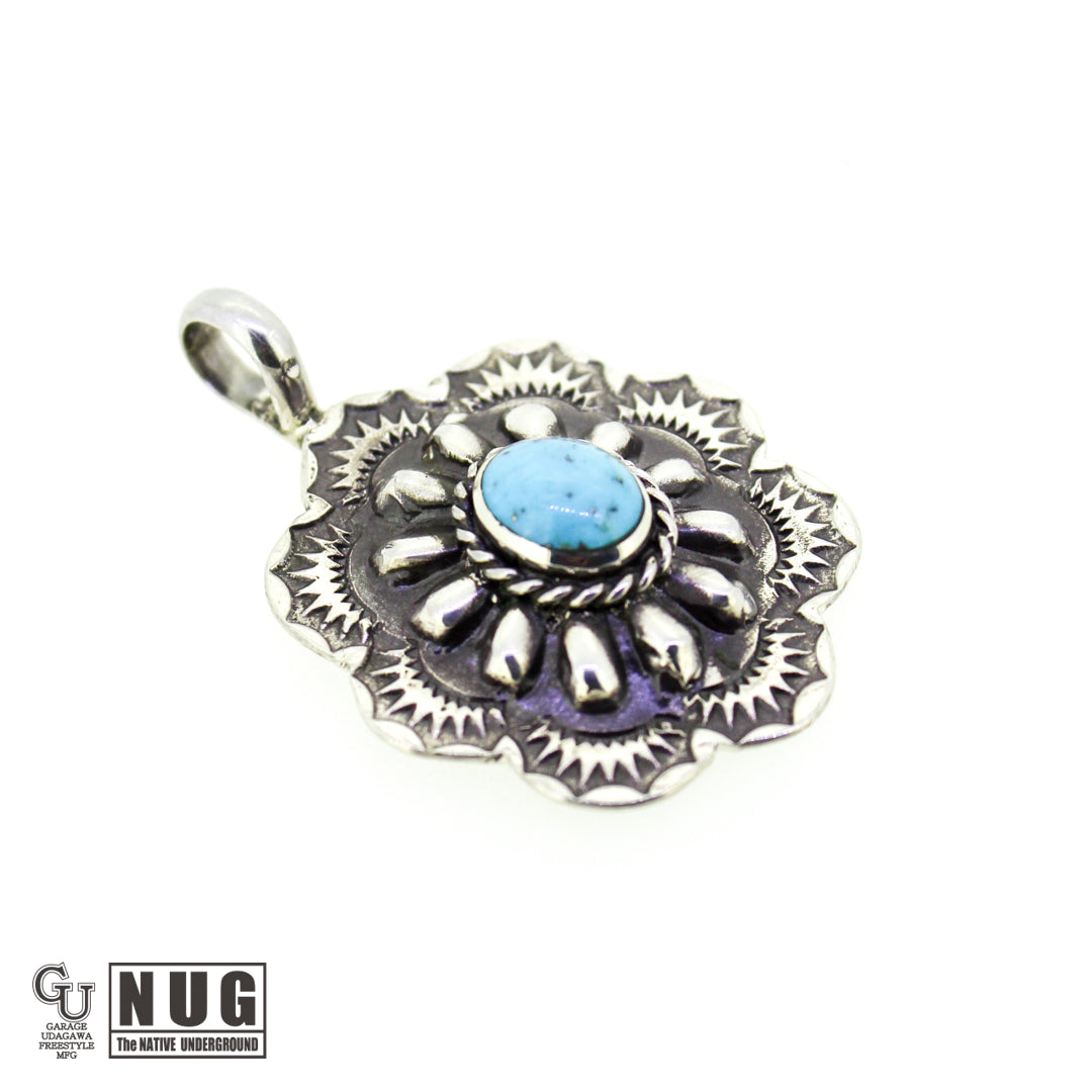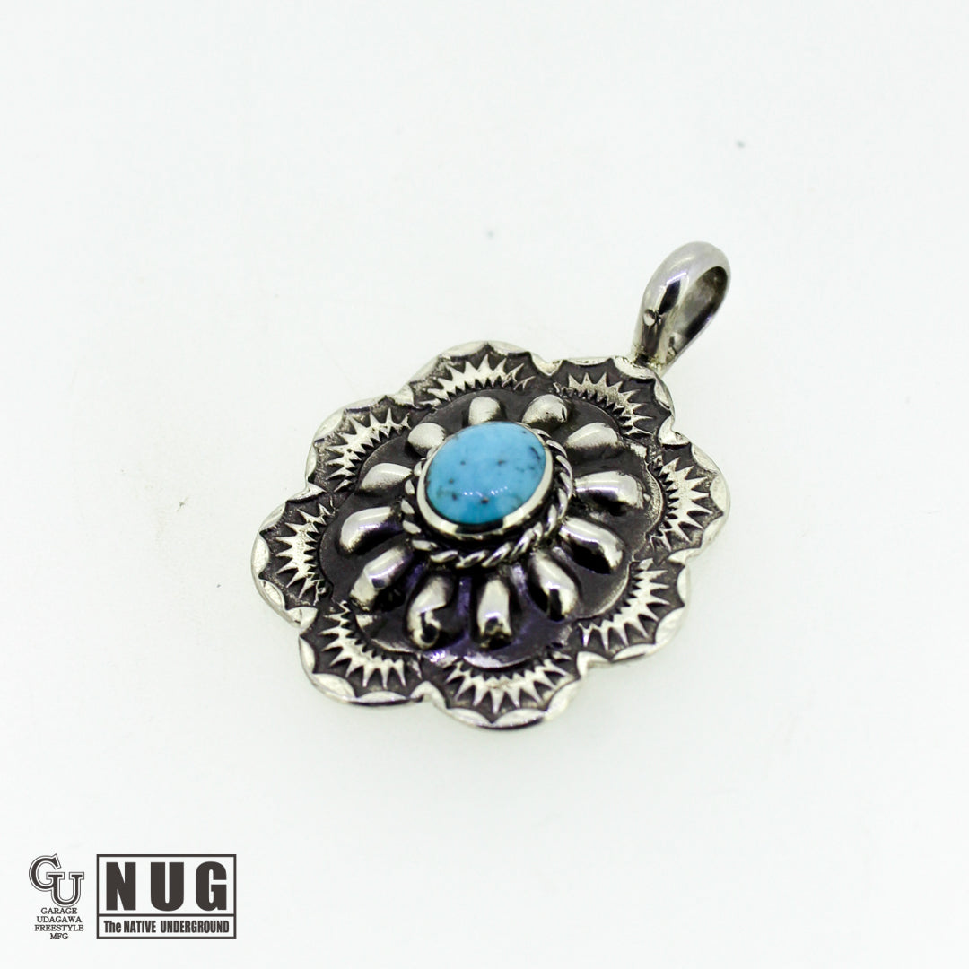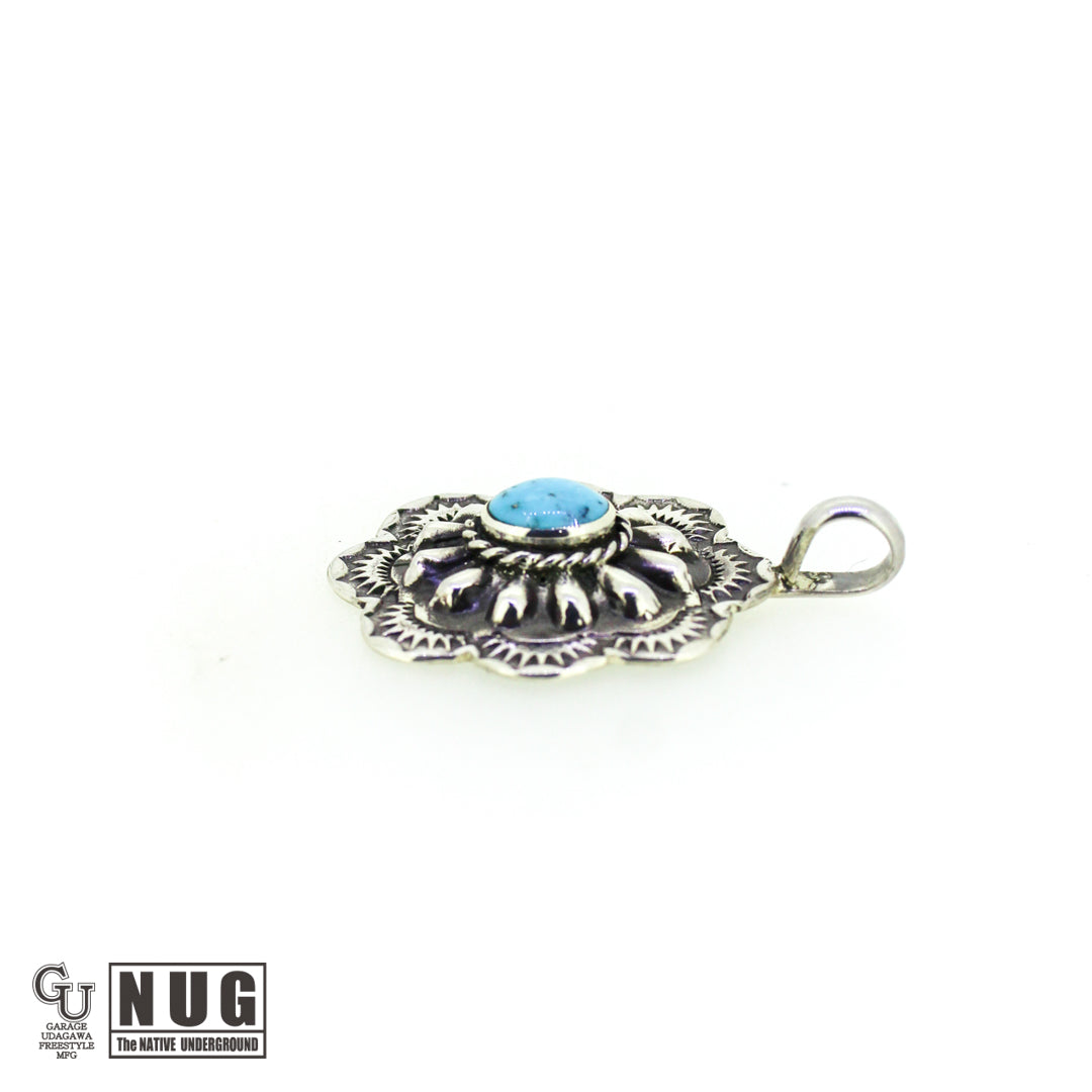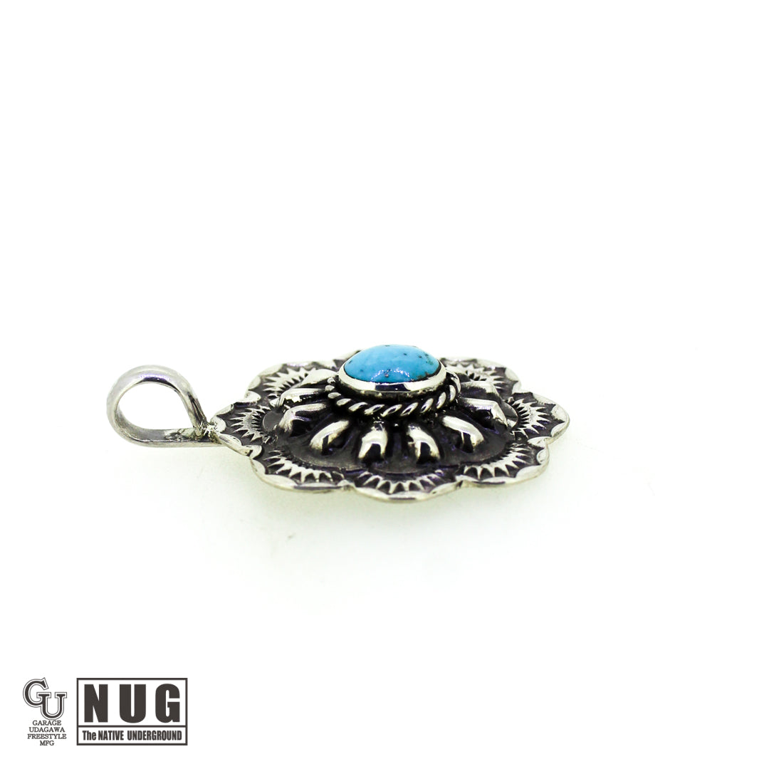 キングマン ターコイズ シルバー スタンピング フラワー ペンダントヘッド