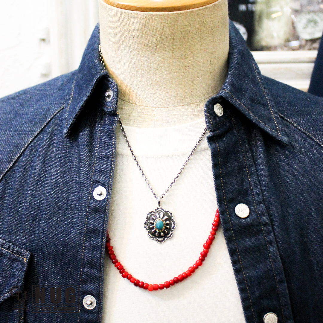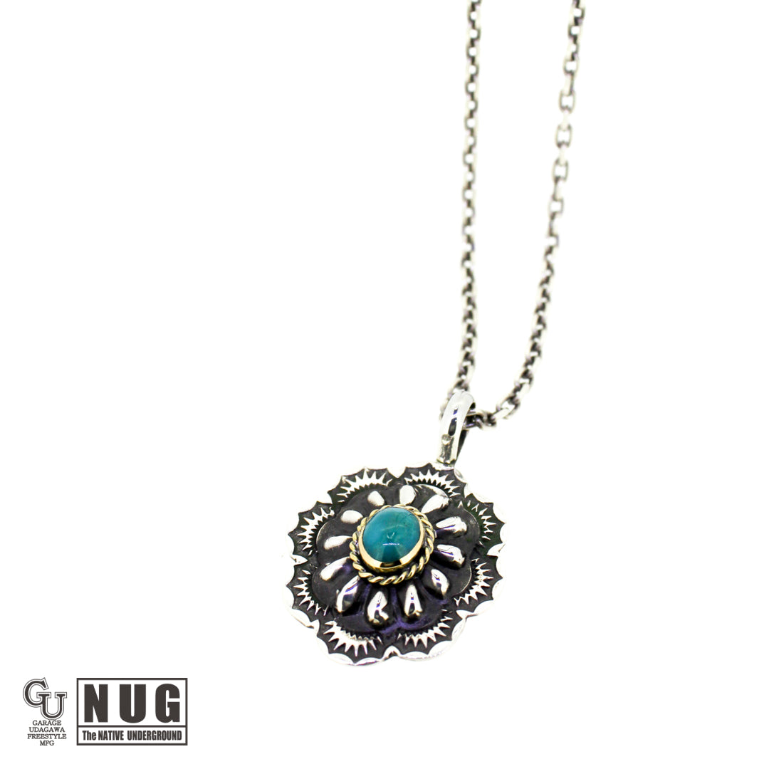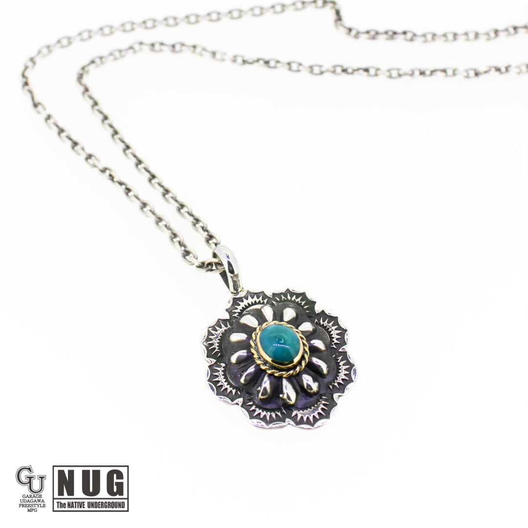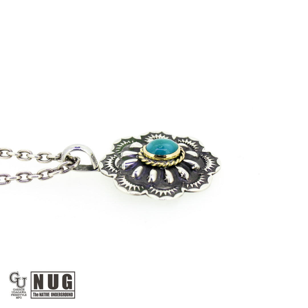 キングマン ターコイズ シルバー & K18 スタンピング フラワーネックレス 50cm