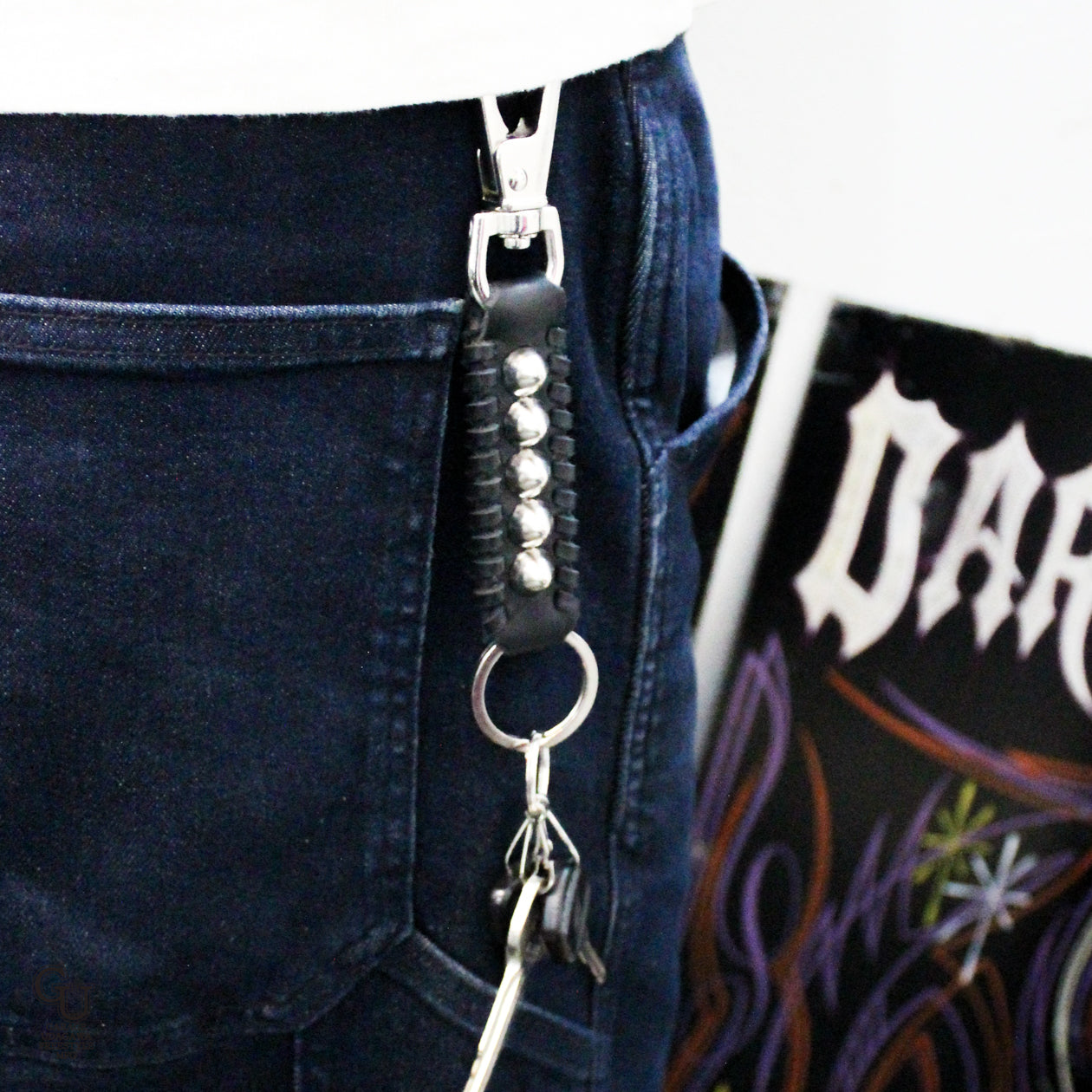 USA製のレザーとスタッズを使用した頑丈なハンドクラフトキーホルダー