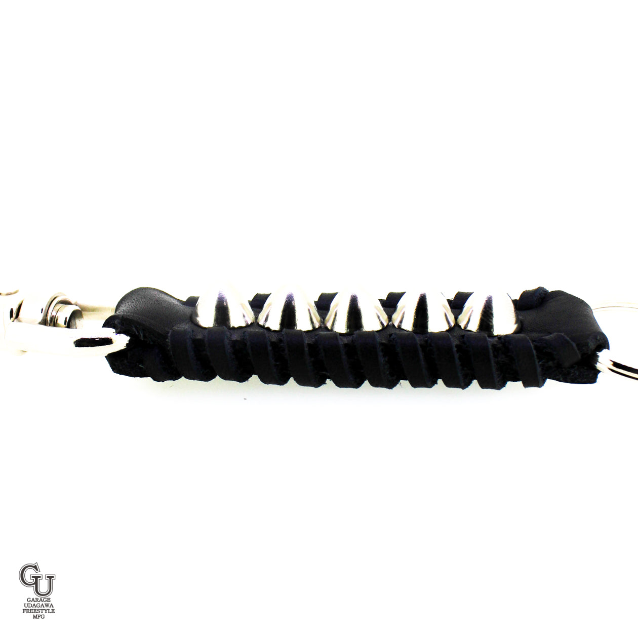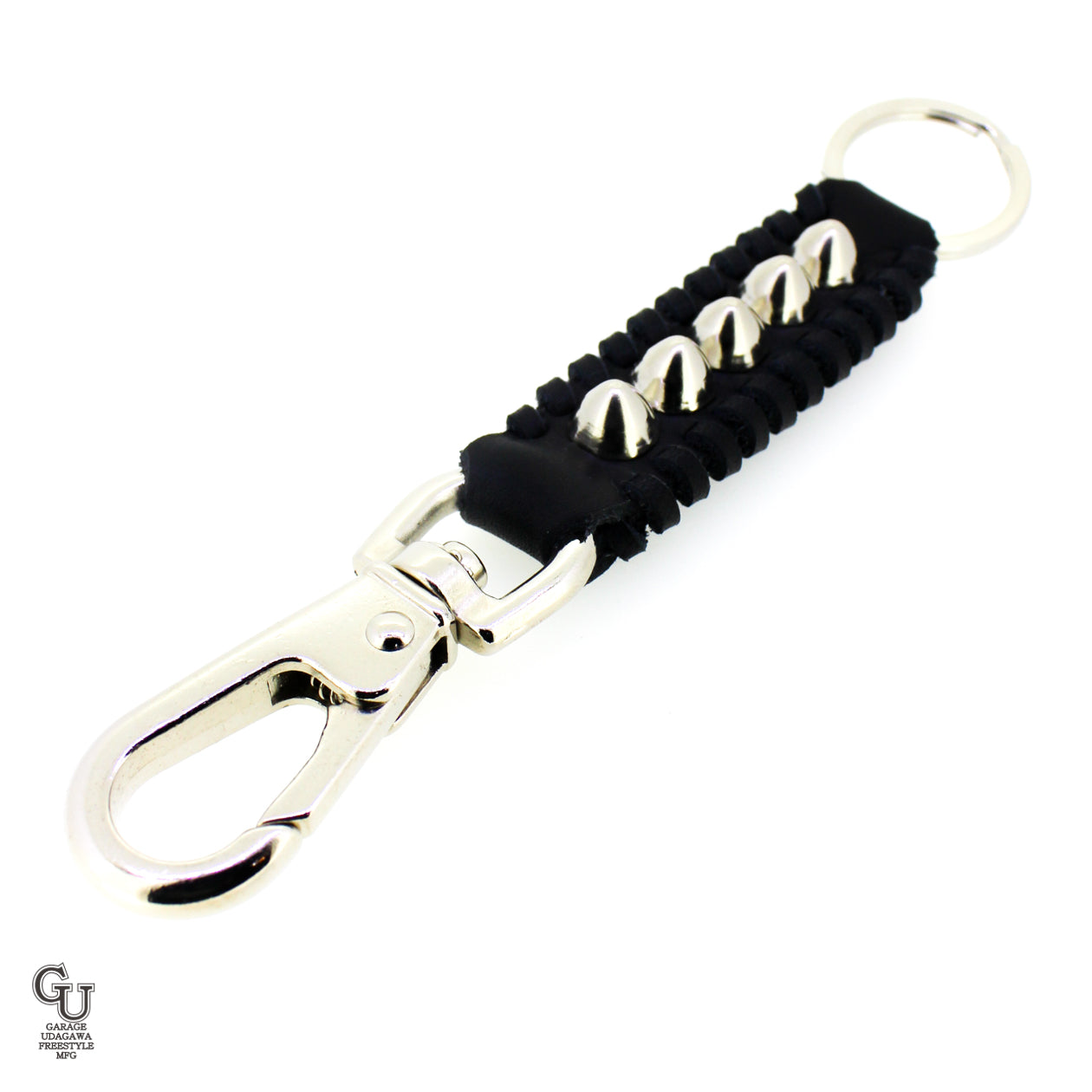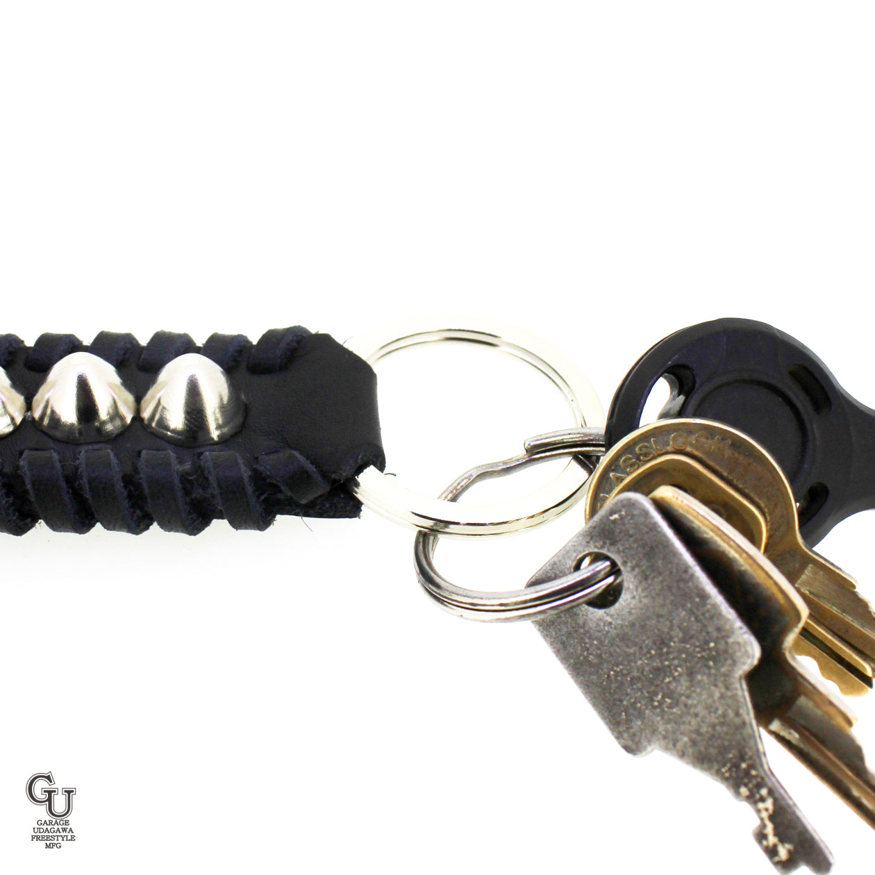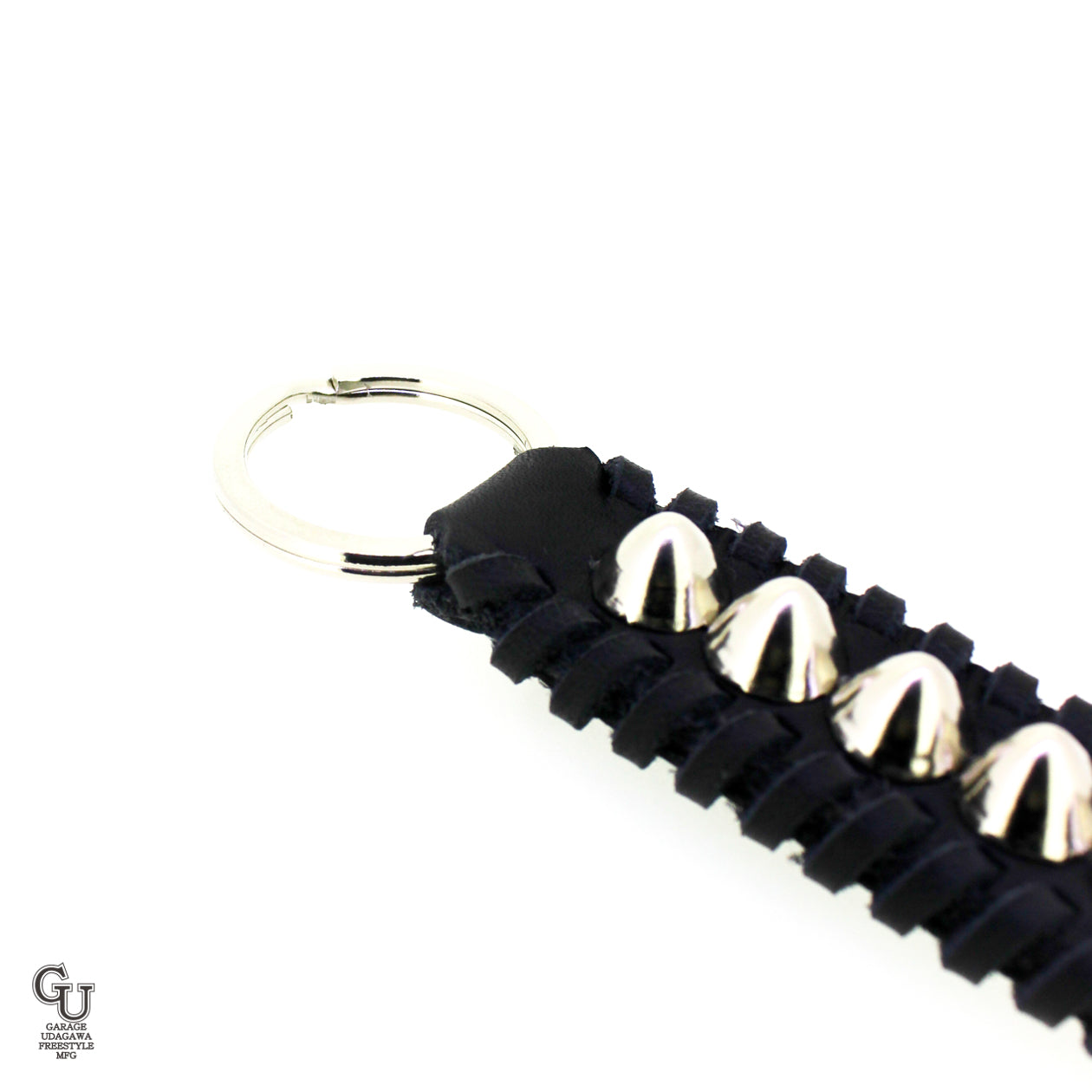 アメリカンオイルレザーにUSA製のコニカルスタッズ(ニッケル)が打ち込こまれたガレージウダガワオリジナルのキーホルダーです。