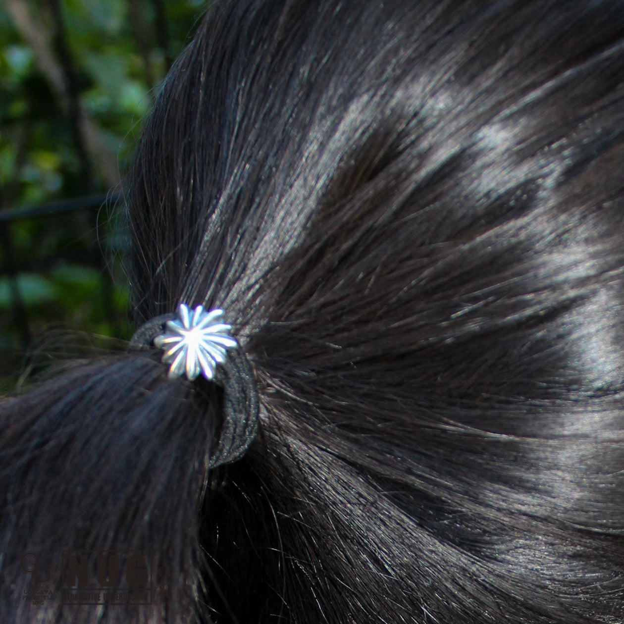 ネイティブアメリカンの伝統的な製法でスタンピングされたハンドメイドコンチョをヘアゴムにアレンジしました。