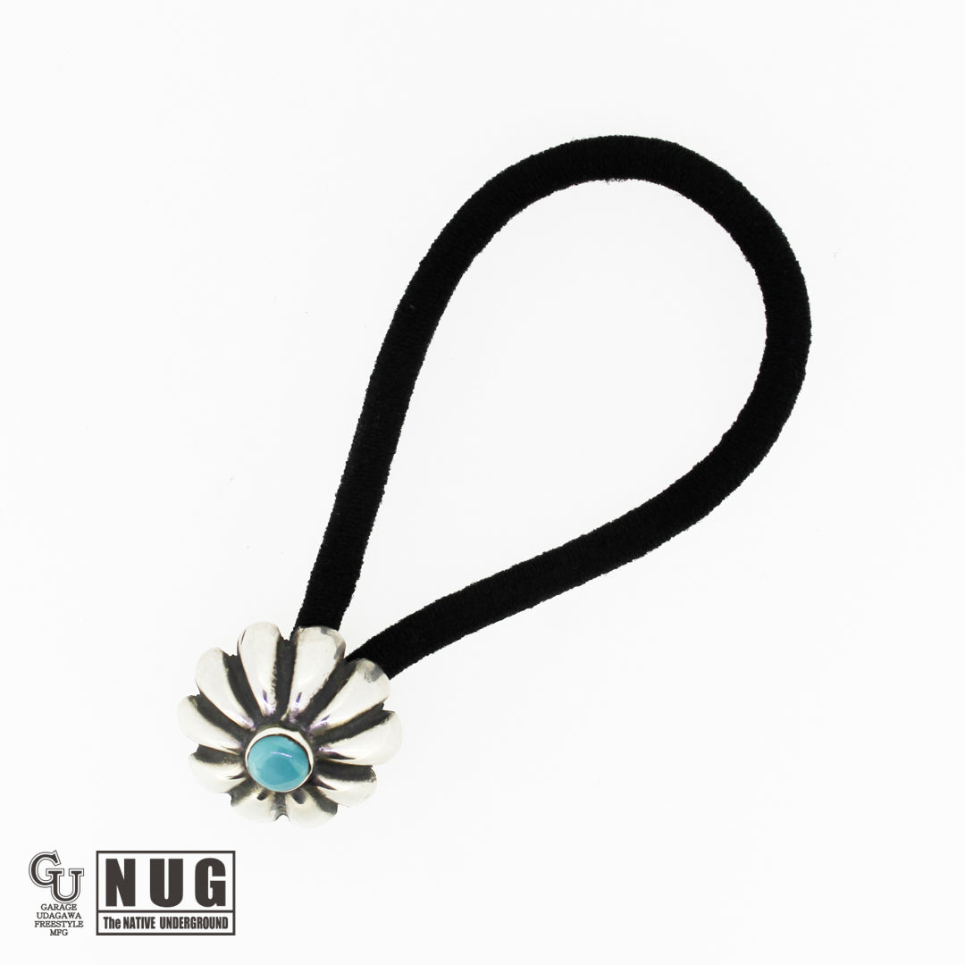 ネイティブアメリカンの伝統的な製法でスタンピングされたハンドメイドコンチョをヘアゴムにアレンジしました。