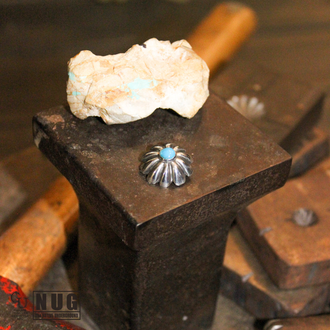 シルバー ハンドメイド コンチョヘアゴム #14 キングマンターコイズ