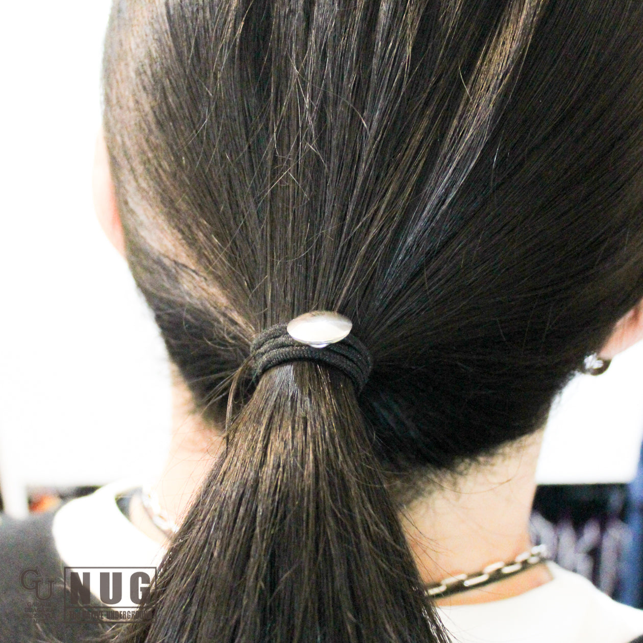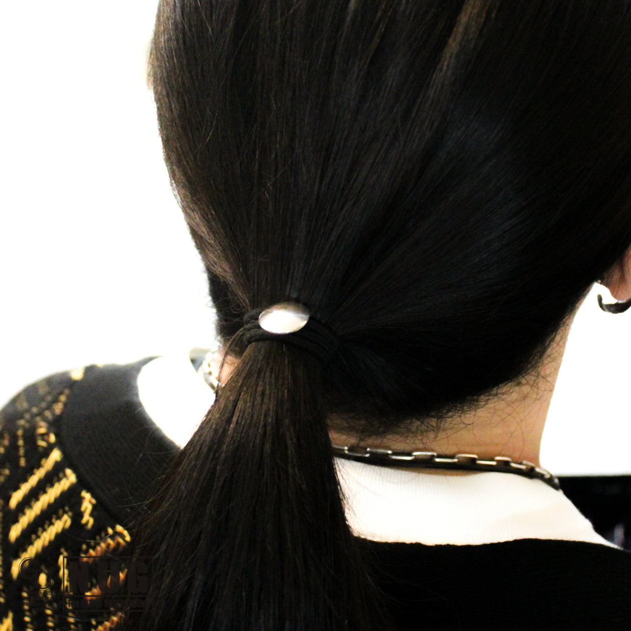 銀板から手作業でひとつひとつ造り上げたプレーンタイプのコンチョをヘアゴムにアレンジしたアイテムです。