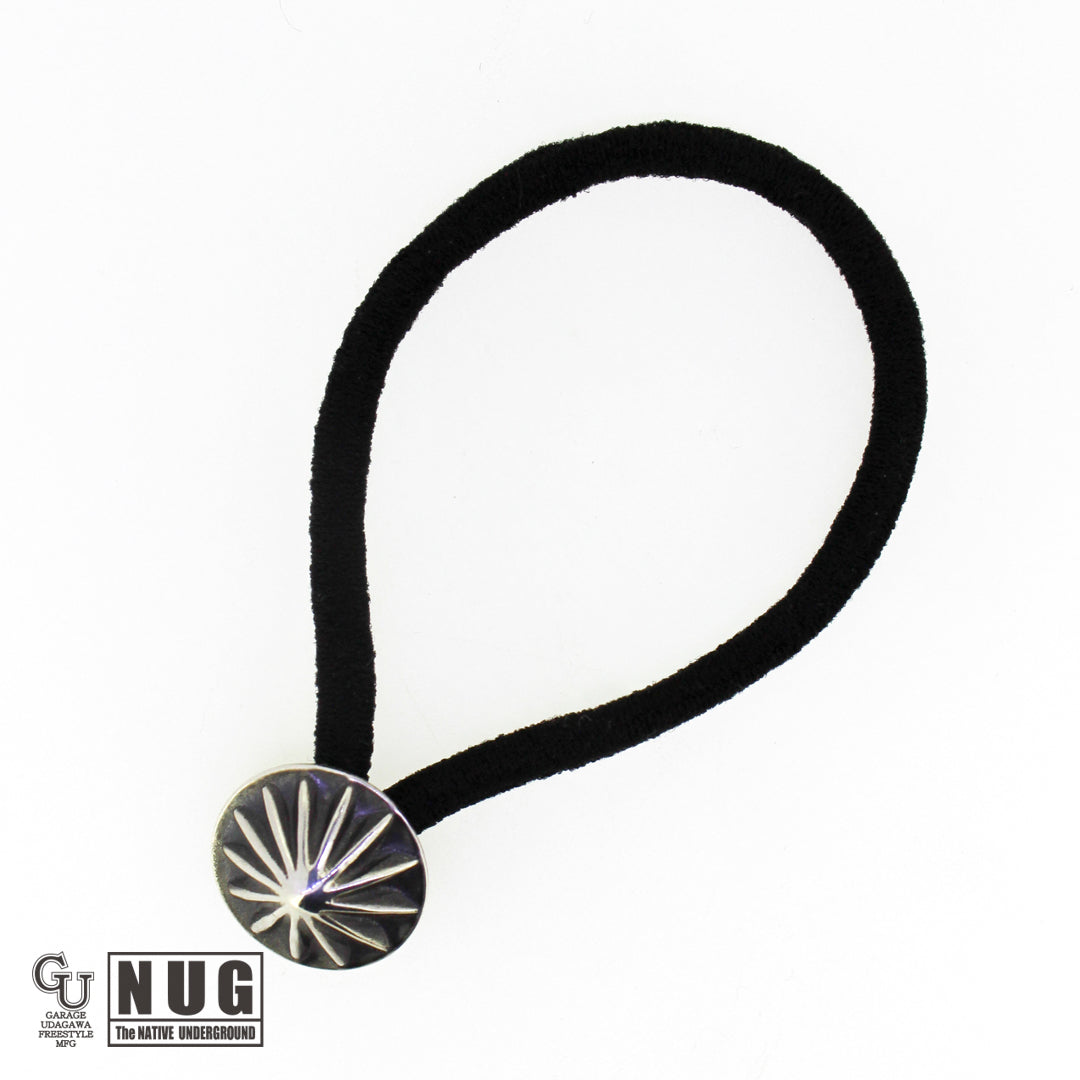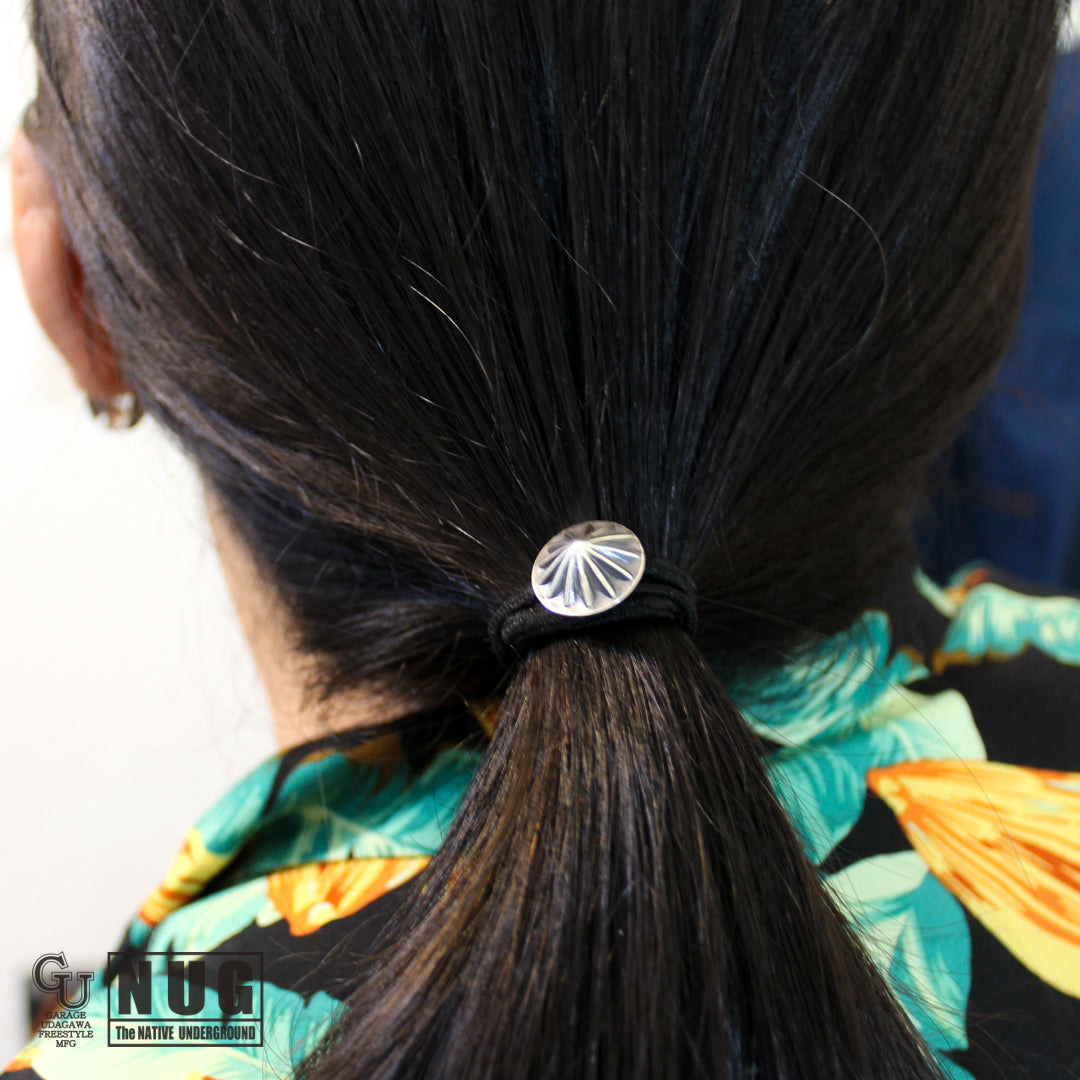 リポウズスタンプワークを施したオリジナルコンチョをヘアゴムにアレンジしました。