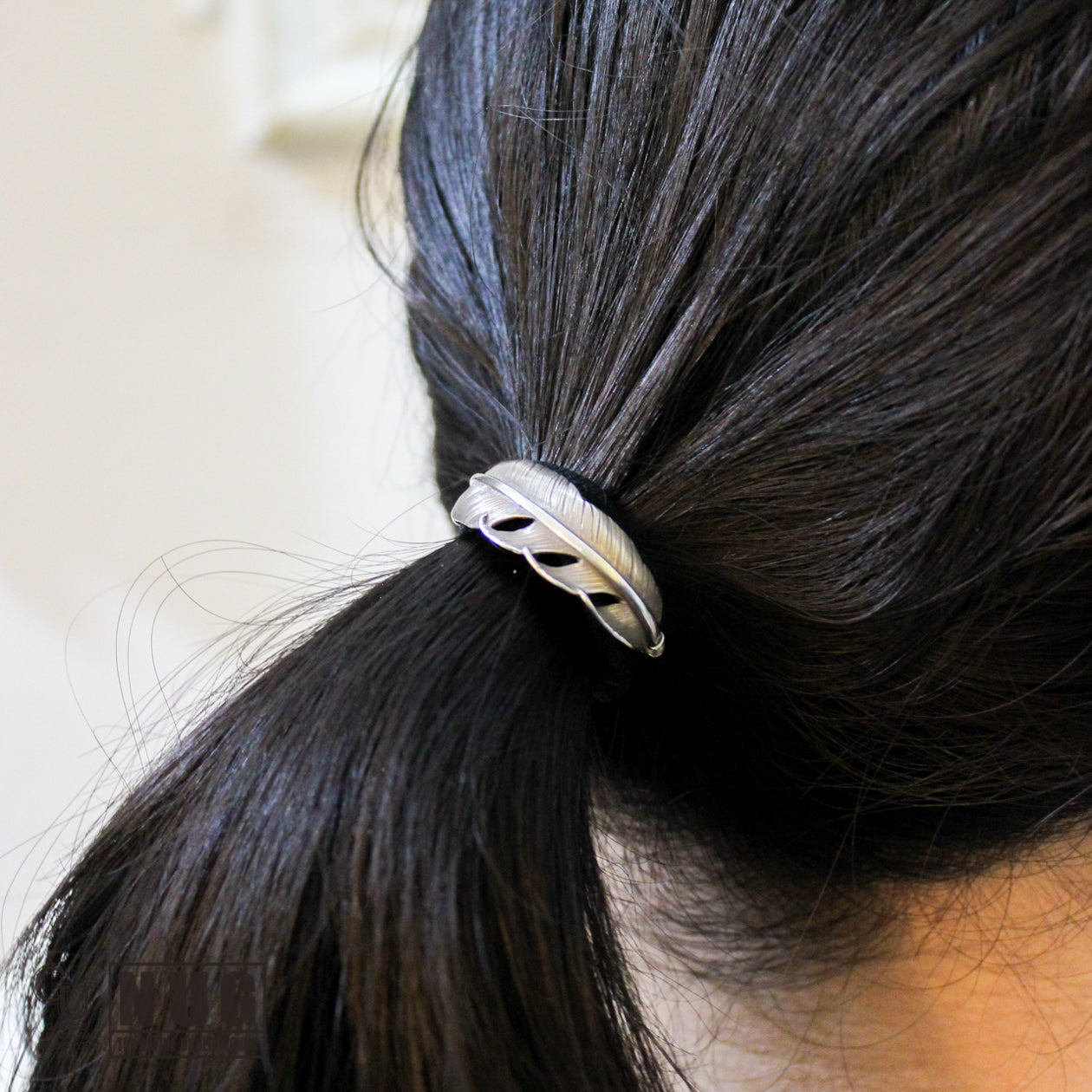 シルバー フェザー ヘアーカフ / ポニーフック 髪留め OX