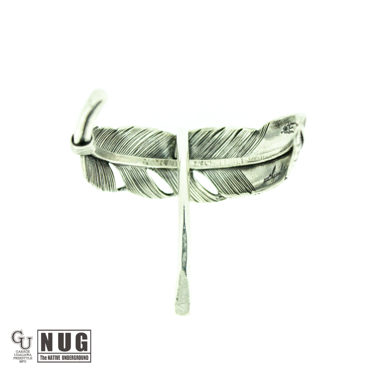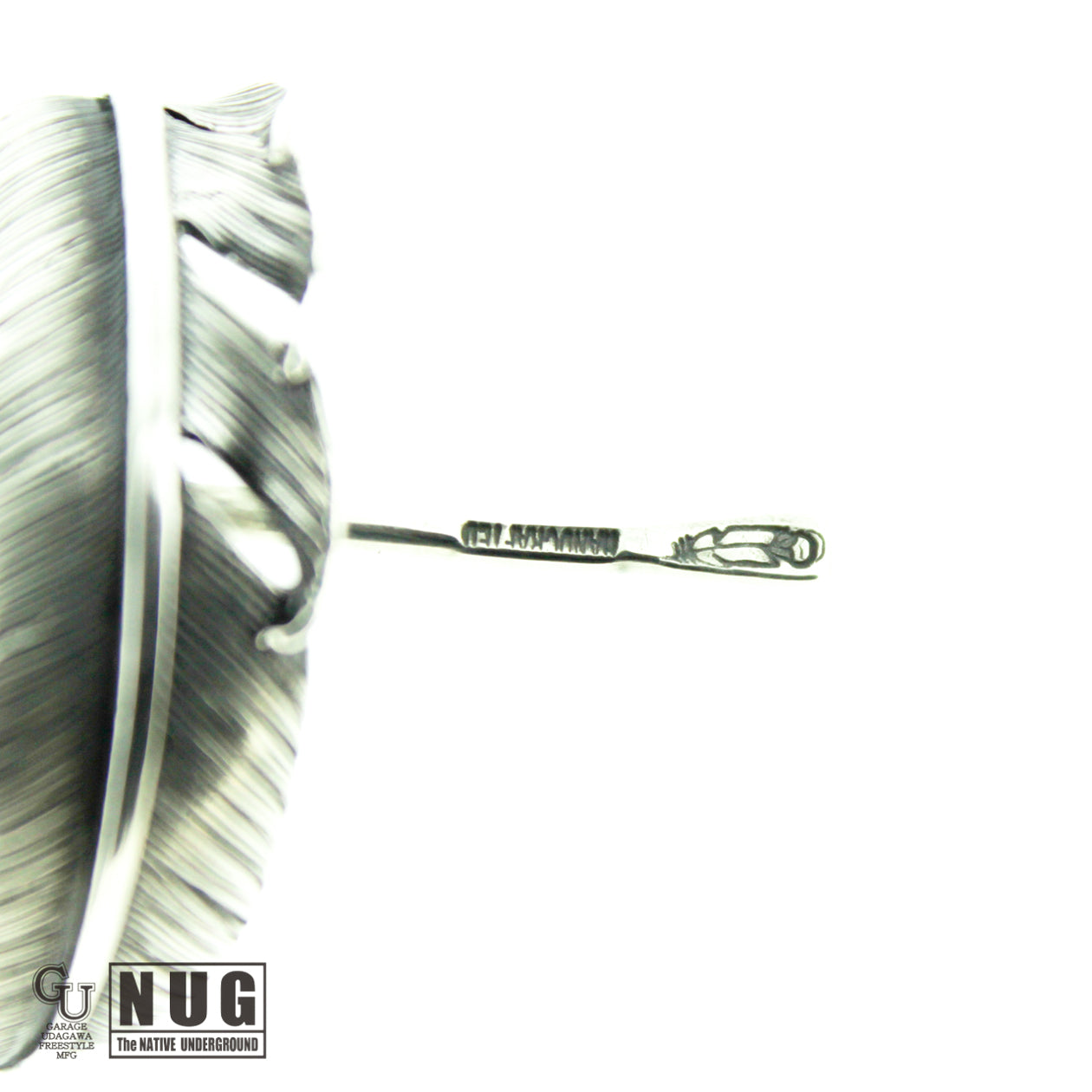 フェザーは1枚の銀板から毛彫り鏨(タガネ)を用いて1筋ずつ丁寧に彫り上げていく技法によって仕上げています。