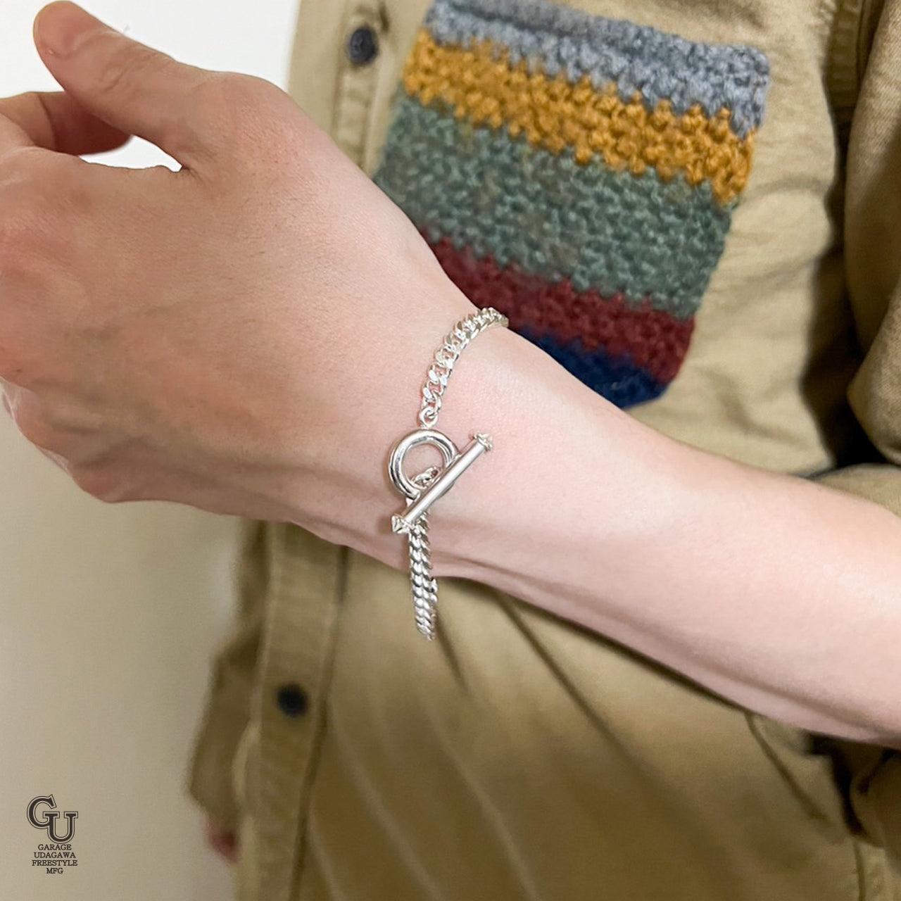 重量感がありシンプルなデザインのブレスレットなので様々なコーデに使用していただけます。