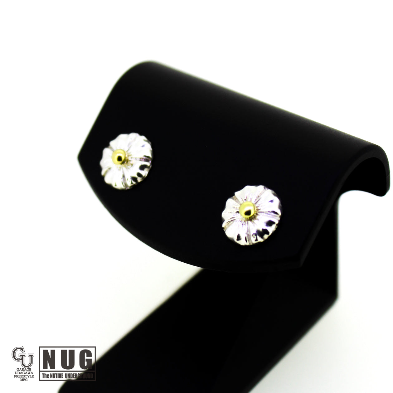シルバー K18 ミニコンチョピアス フラワー #6 (両耳用)