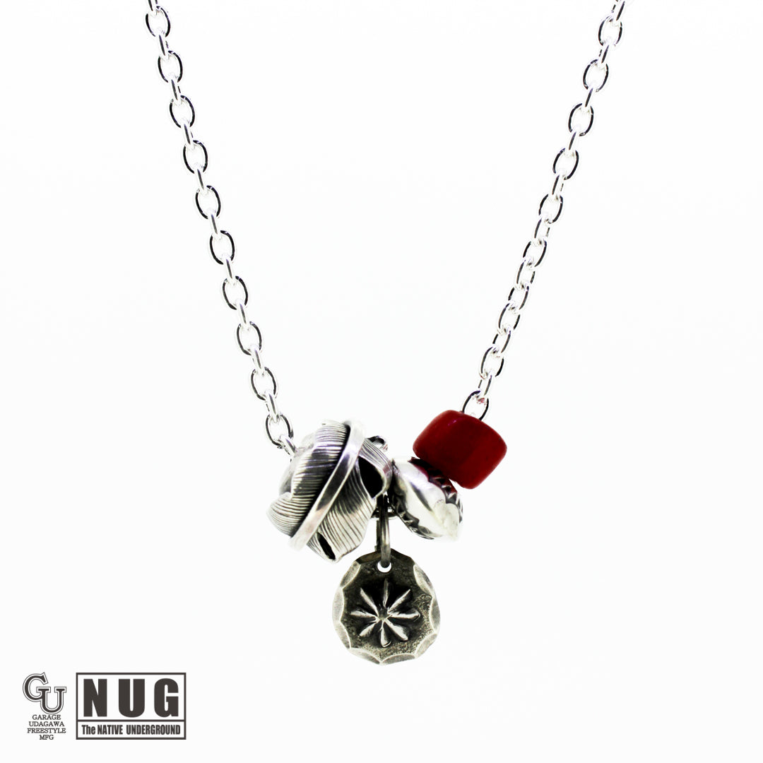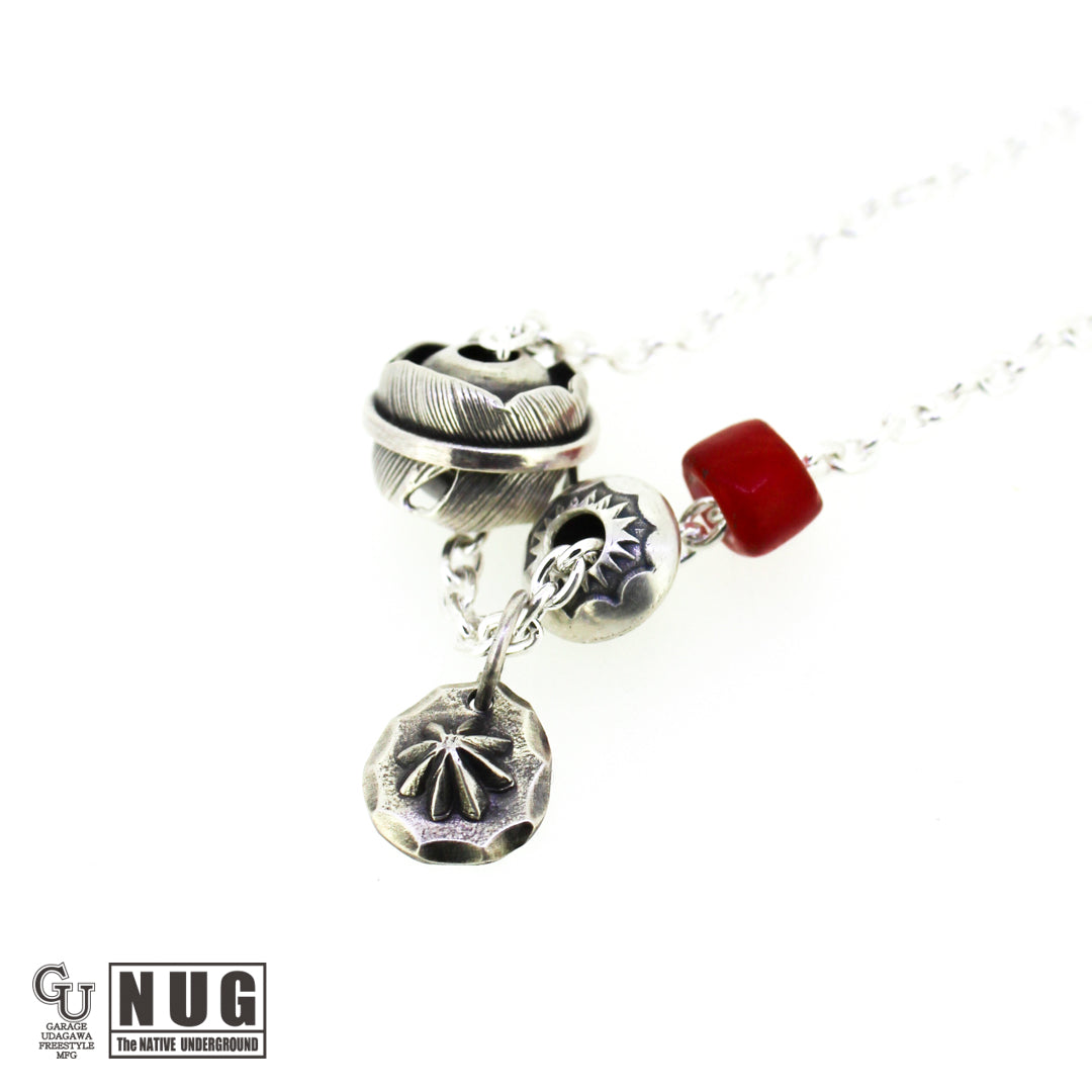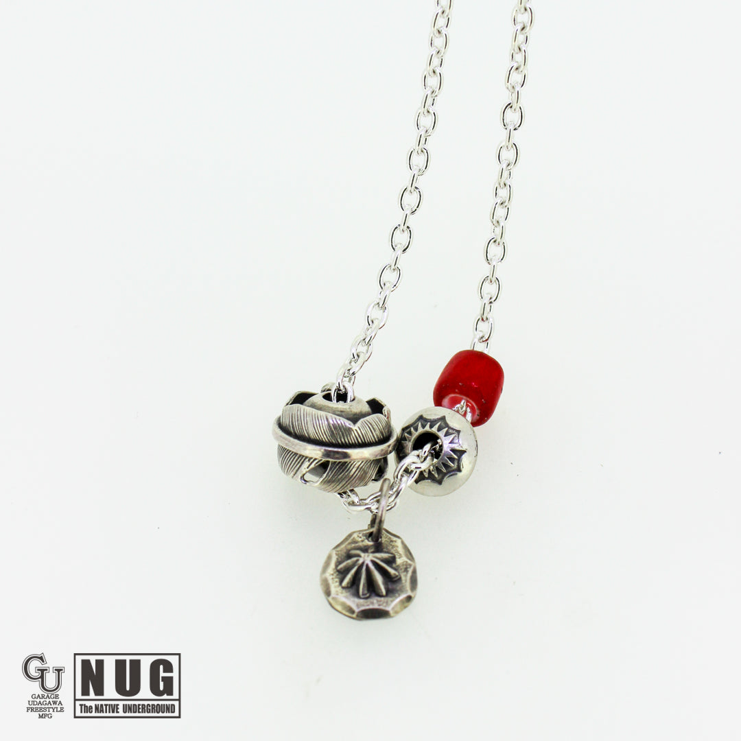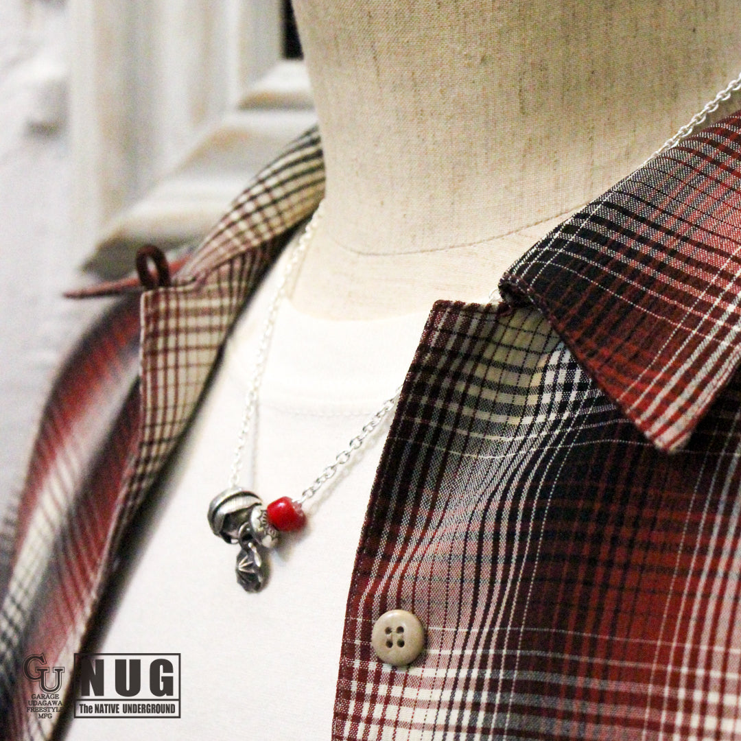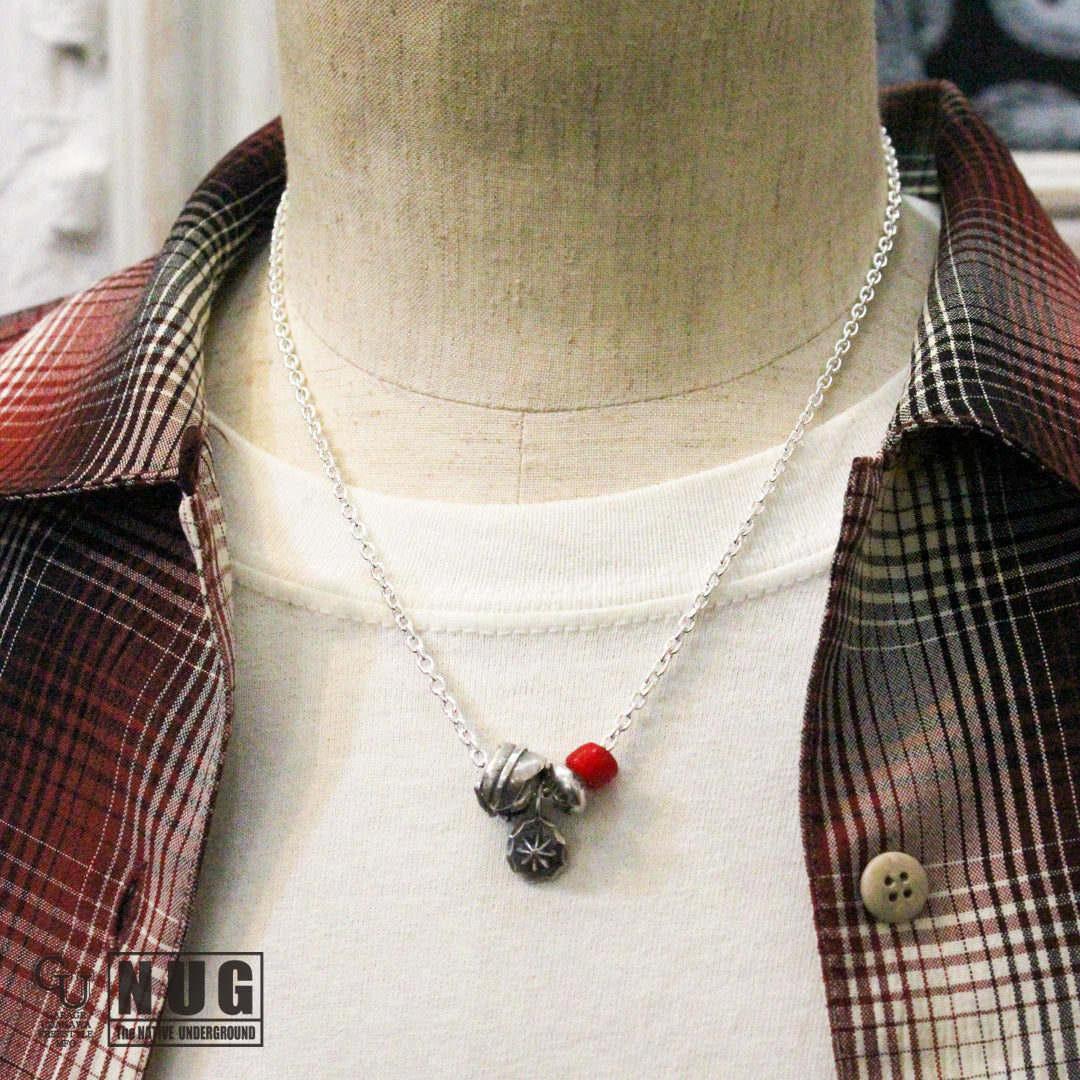 定番のシルバー925製あずきチェーンにガレージウダガワの工房にてハンドメイドで作られたビーズ、チャームを組み上げたネックレスです