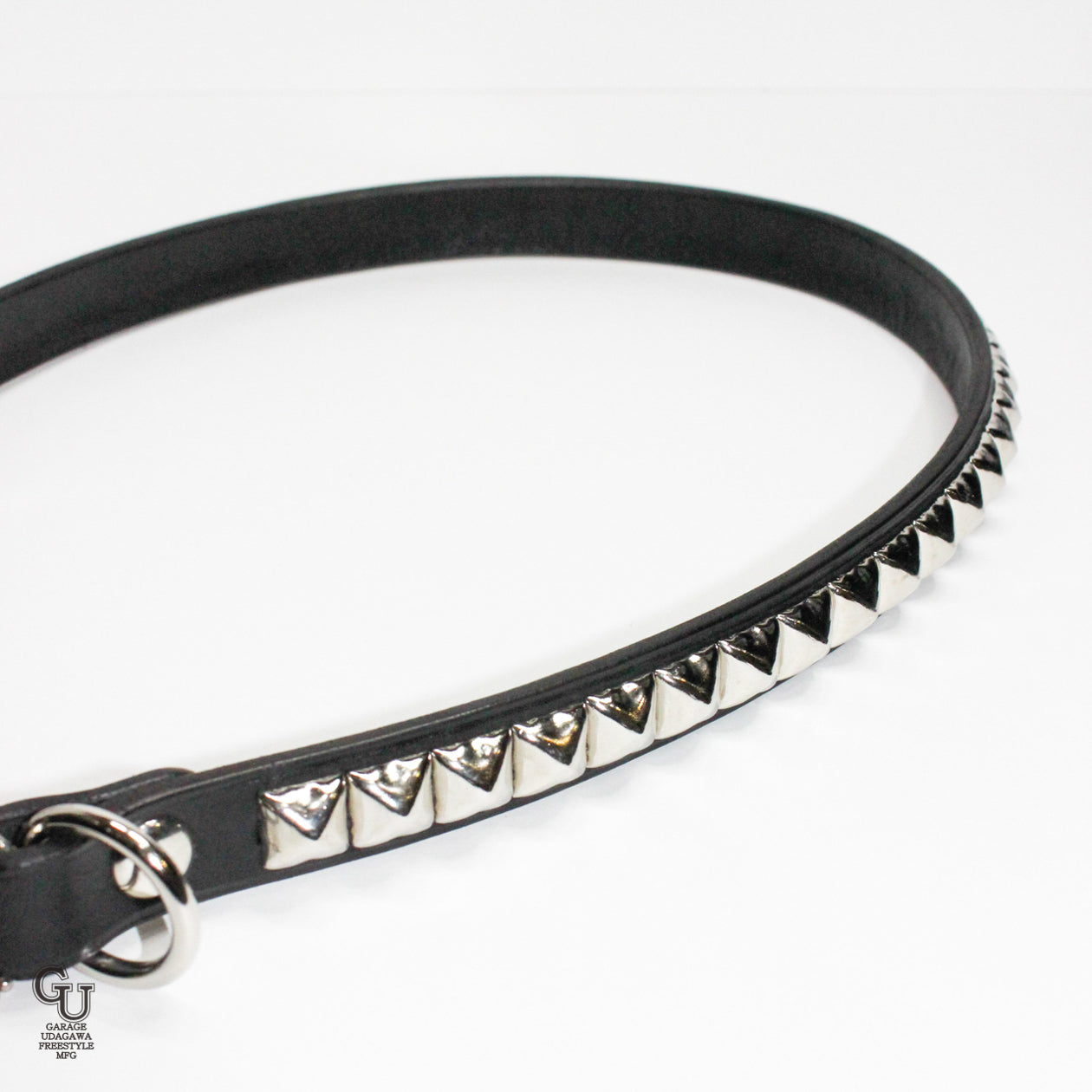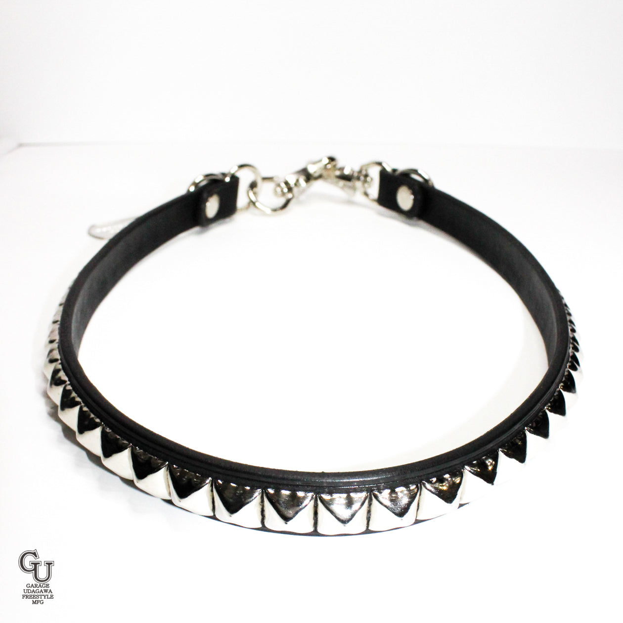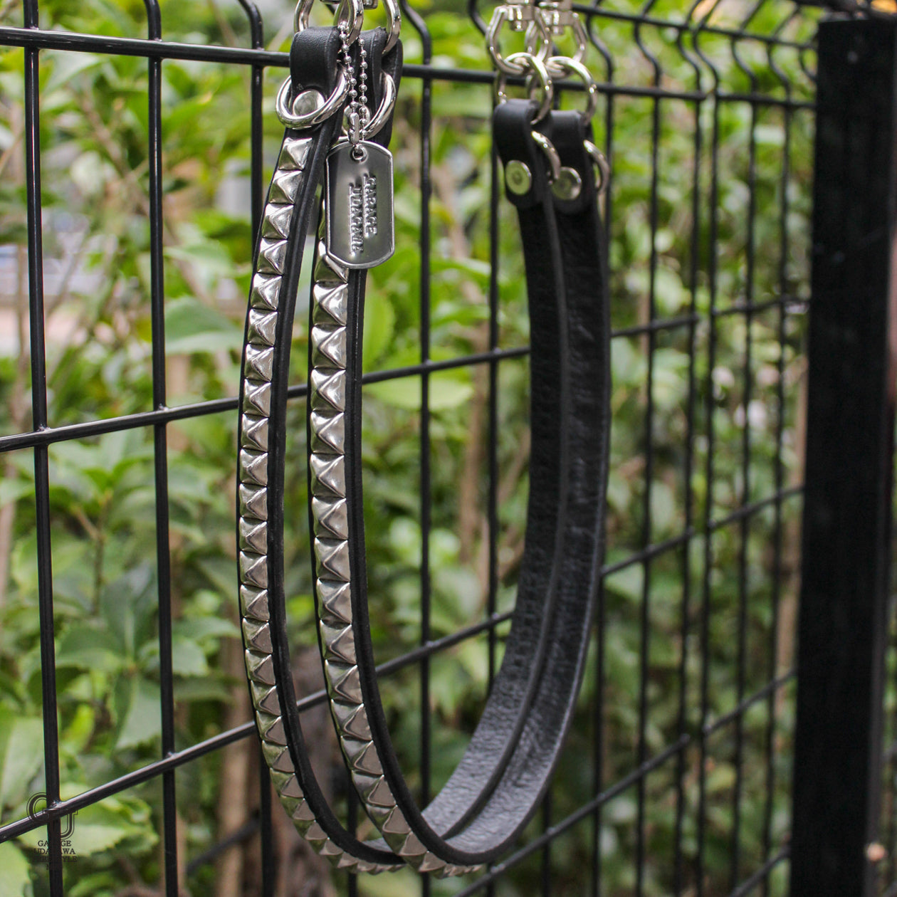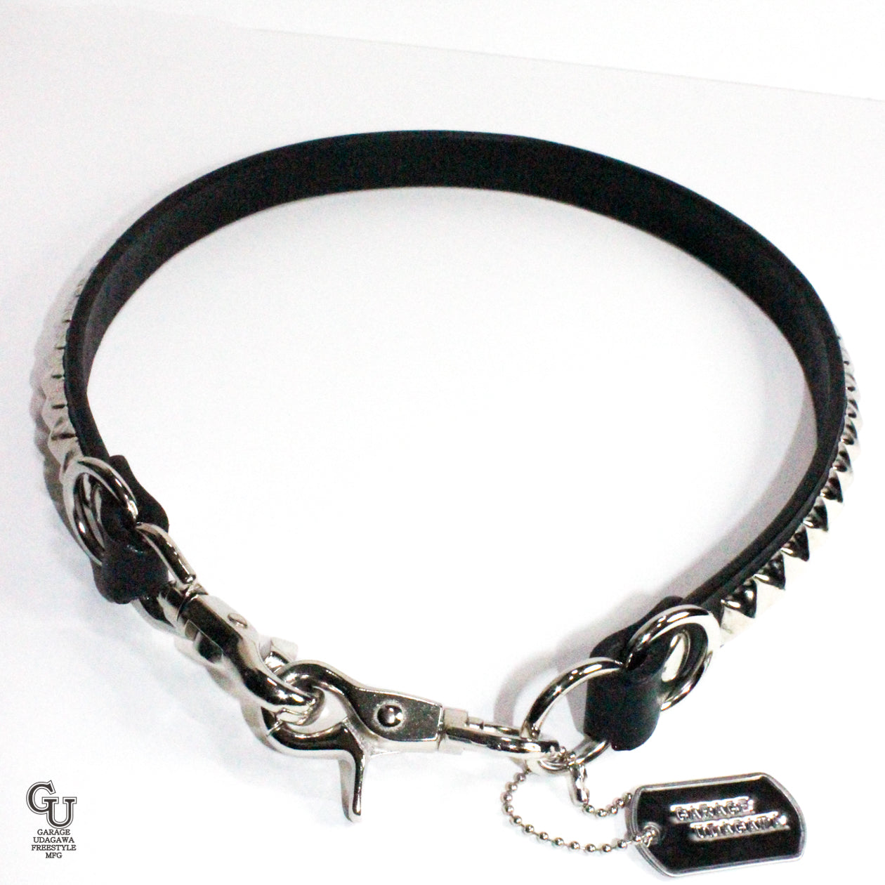 スタンダードサドルレザーにUSA製のピラミッドスタッズがひとつひとつ打ち込こまれたガレージウダガワオリジナルのウォレットコードです。