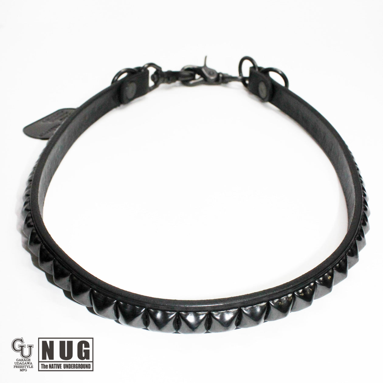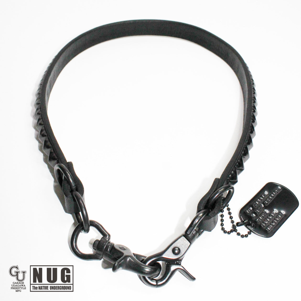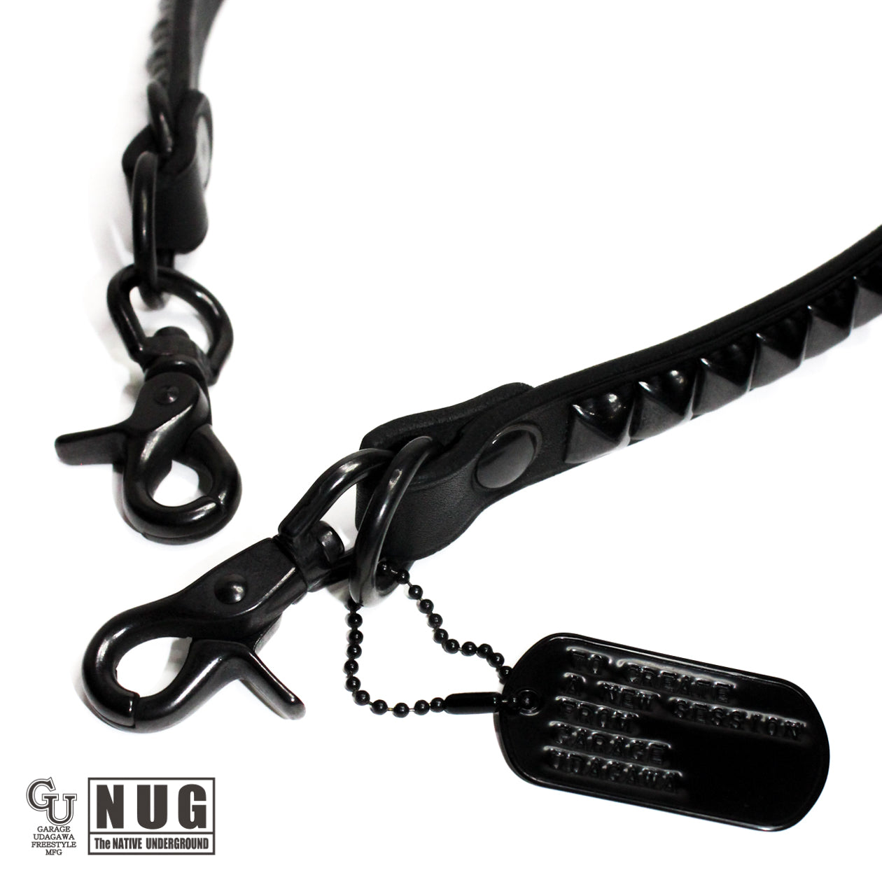スタンダードサドルレザーにUSA製のピラミッドスタッズがひとつひとつ打ち込こまれたガレージウダガワオリジナルのウォレットコードです。