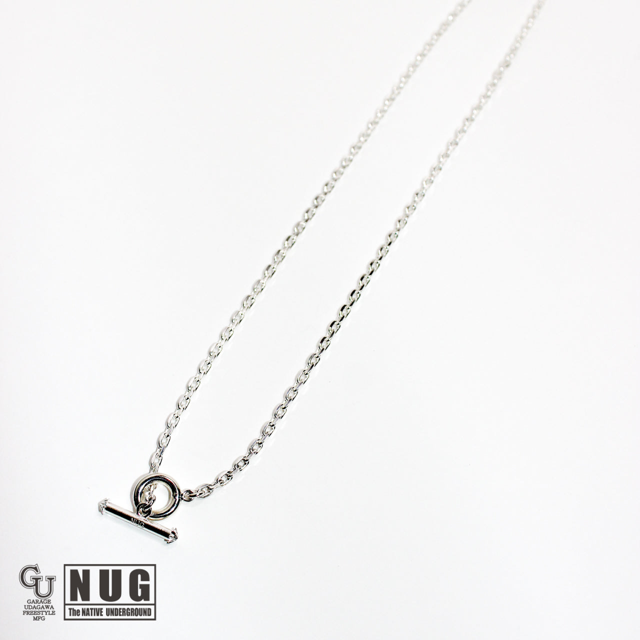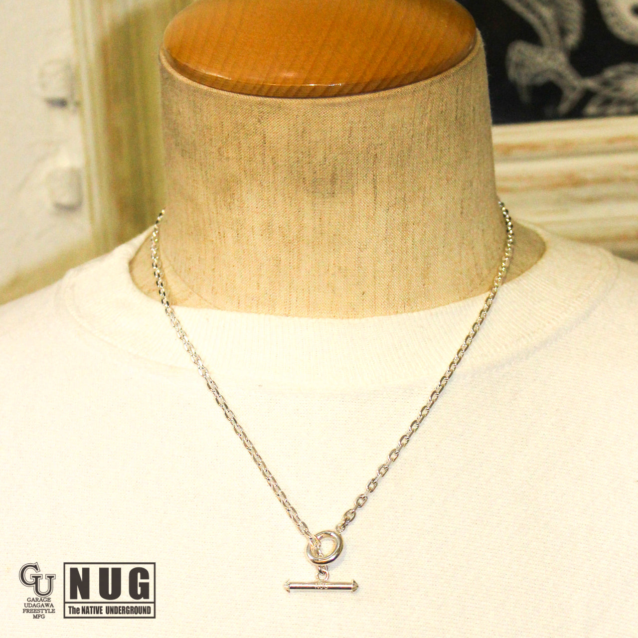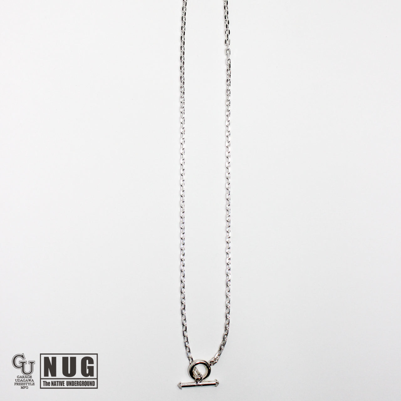 50cmの四面カットあずきチェーンにオリジナルのフェザー、アポロバーの留め具を組合わせたシルバーネックレスです。