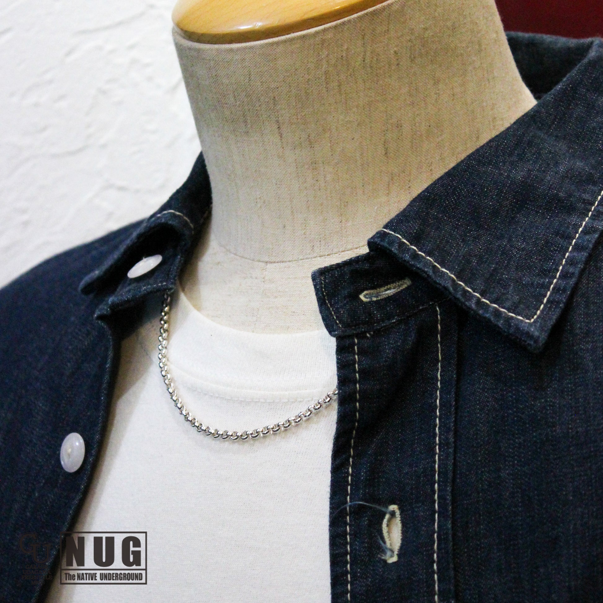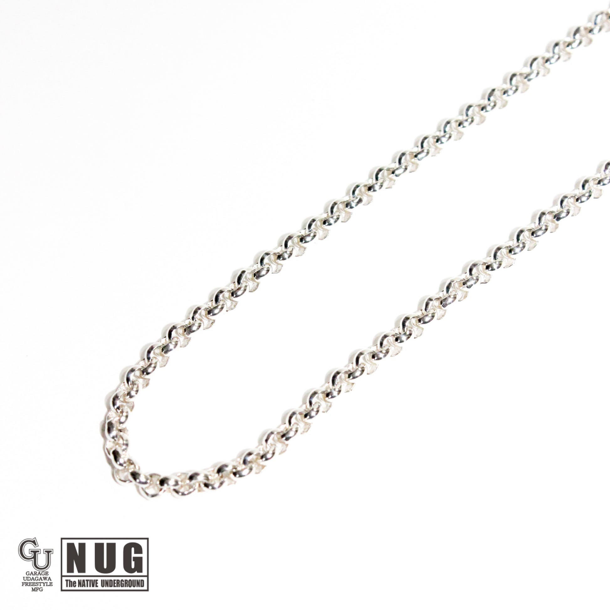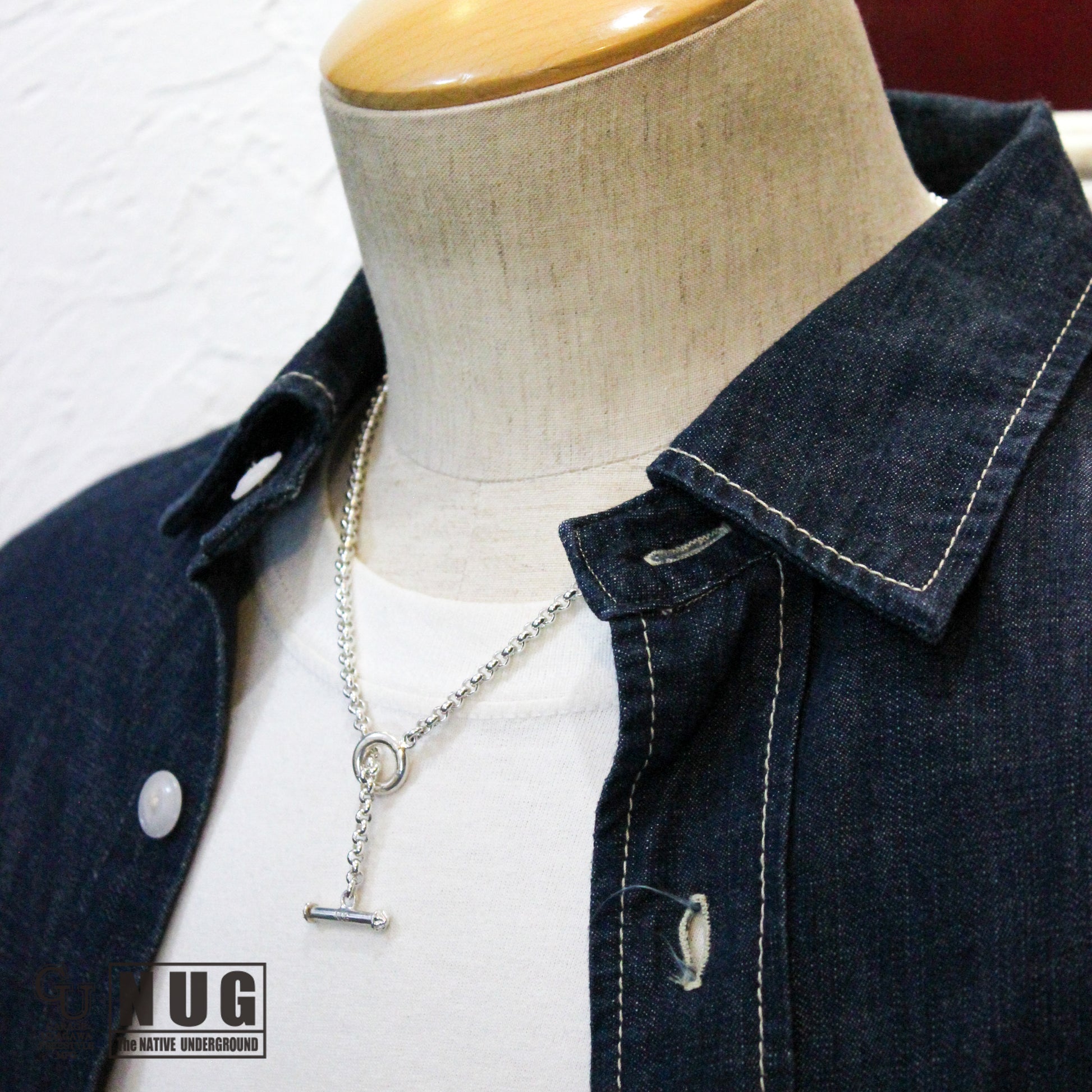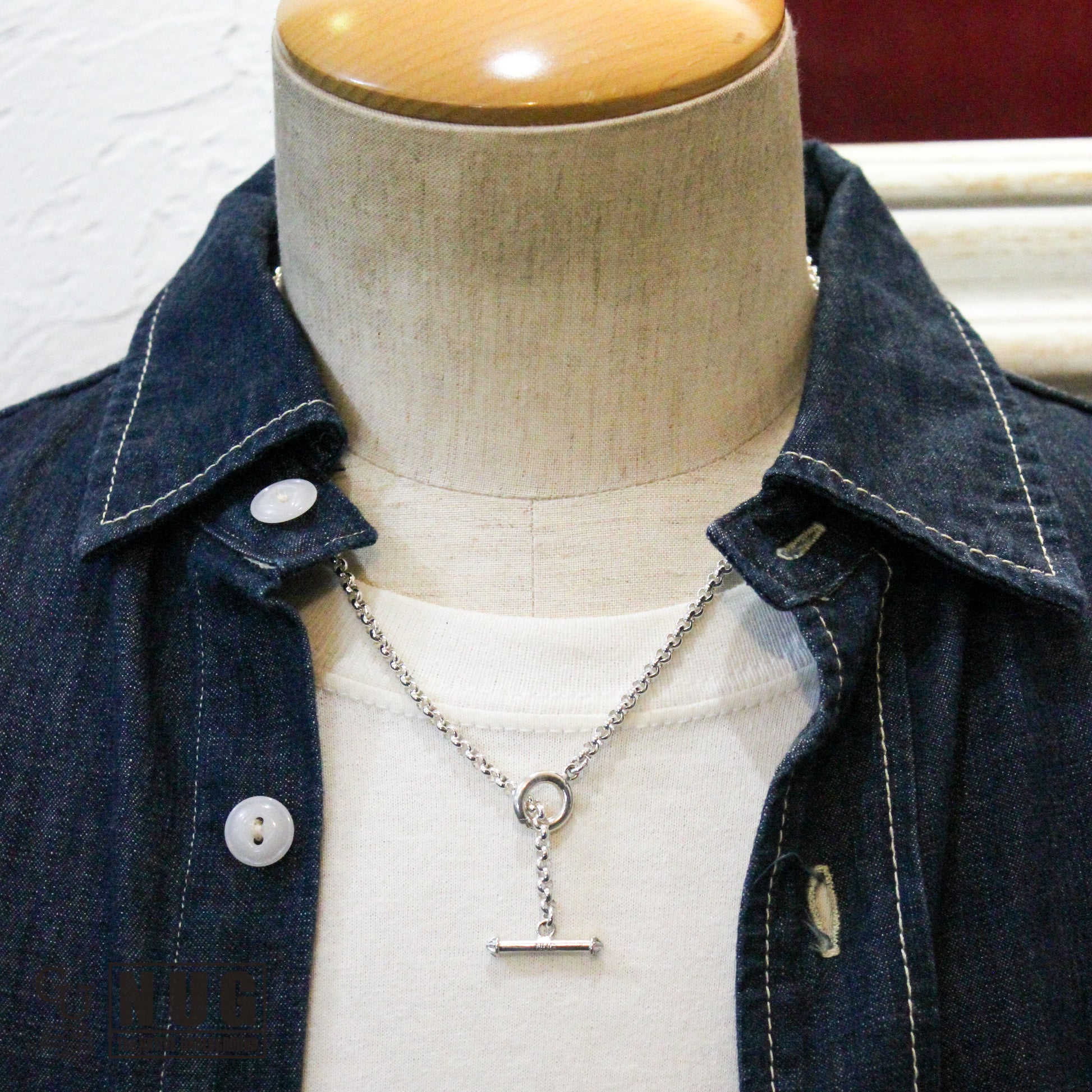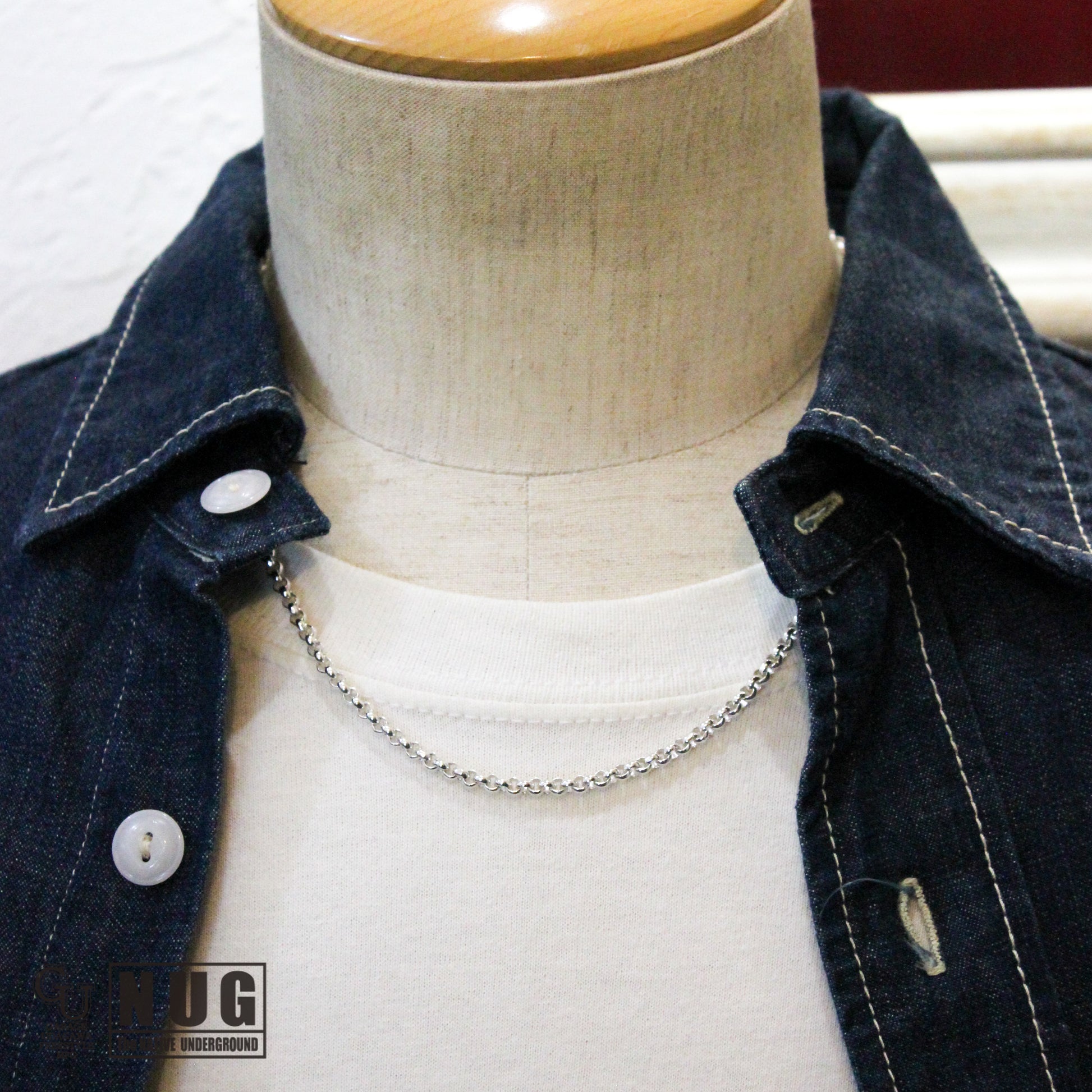 50cmのロール(甲丸)のシルバーチェーンにマンテルデザインの留め具を組合わせたオリジナルネックレスです。