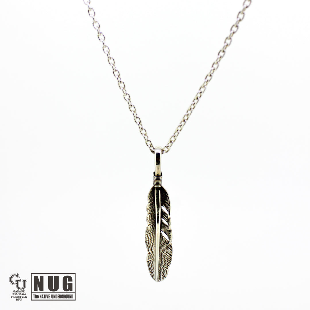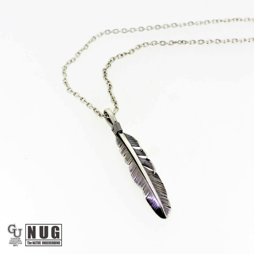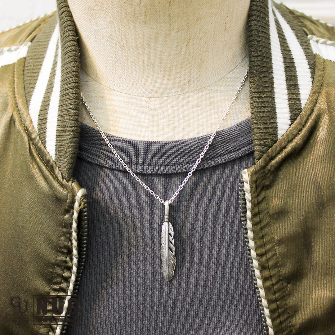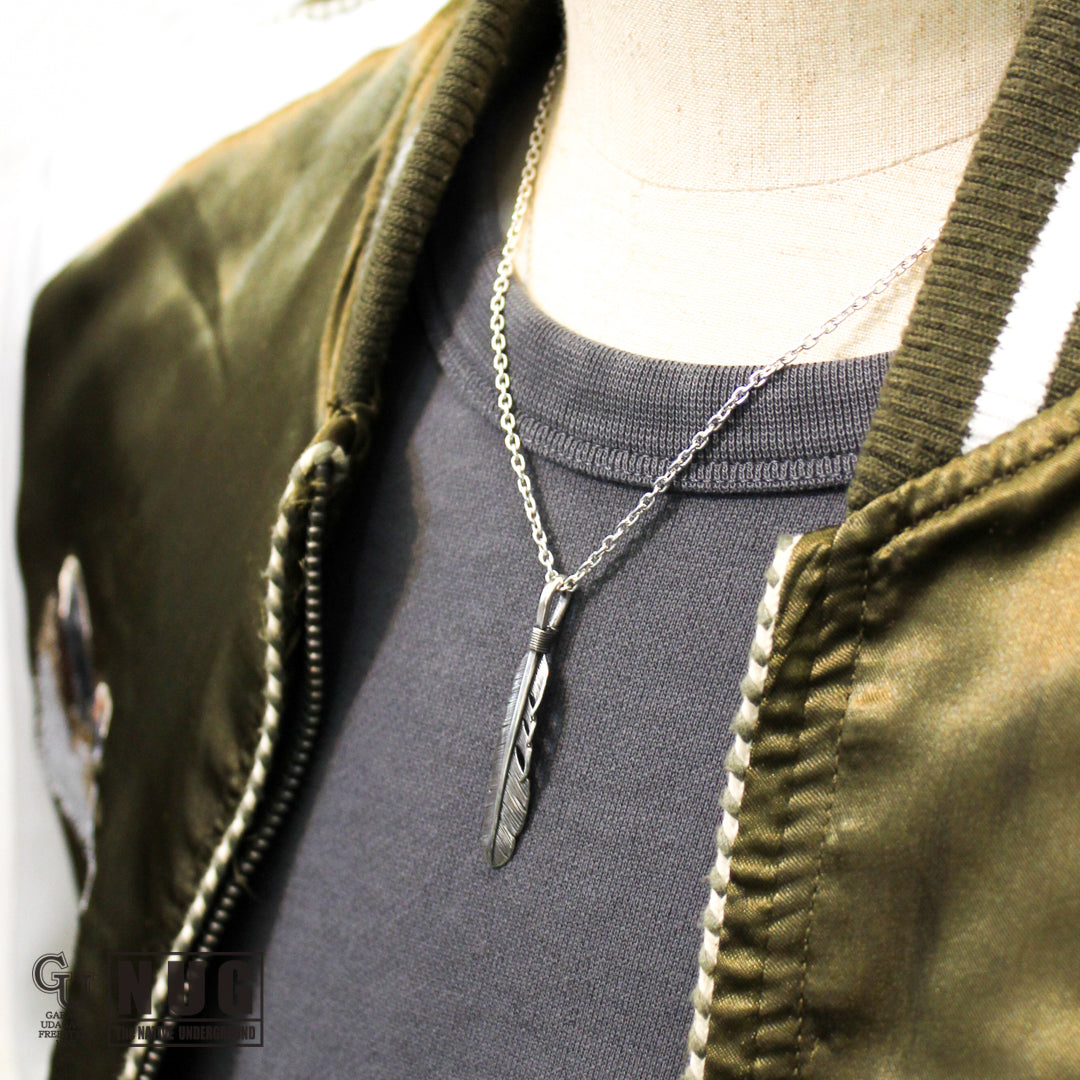イーグル(鷲)の羽根がモチーフとなるフェザーペンダントヘッドと定番のあずきチェーン(シルバー925製)を組み合わせたガレージウダガワのオリジナルネックレスです。