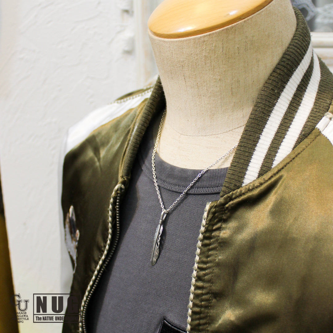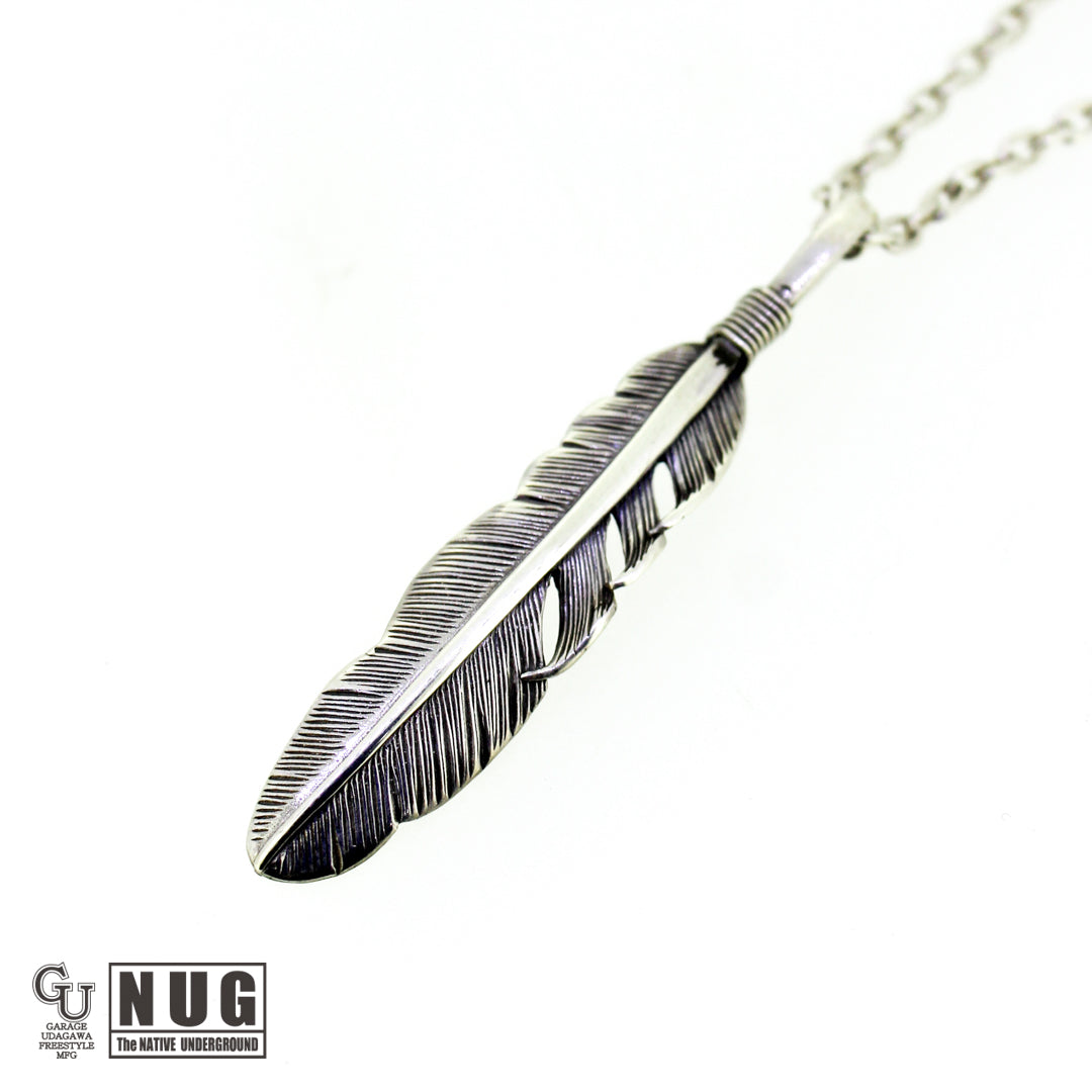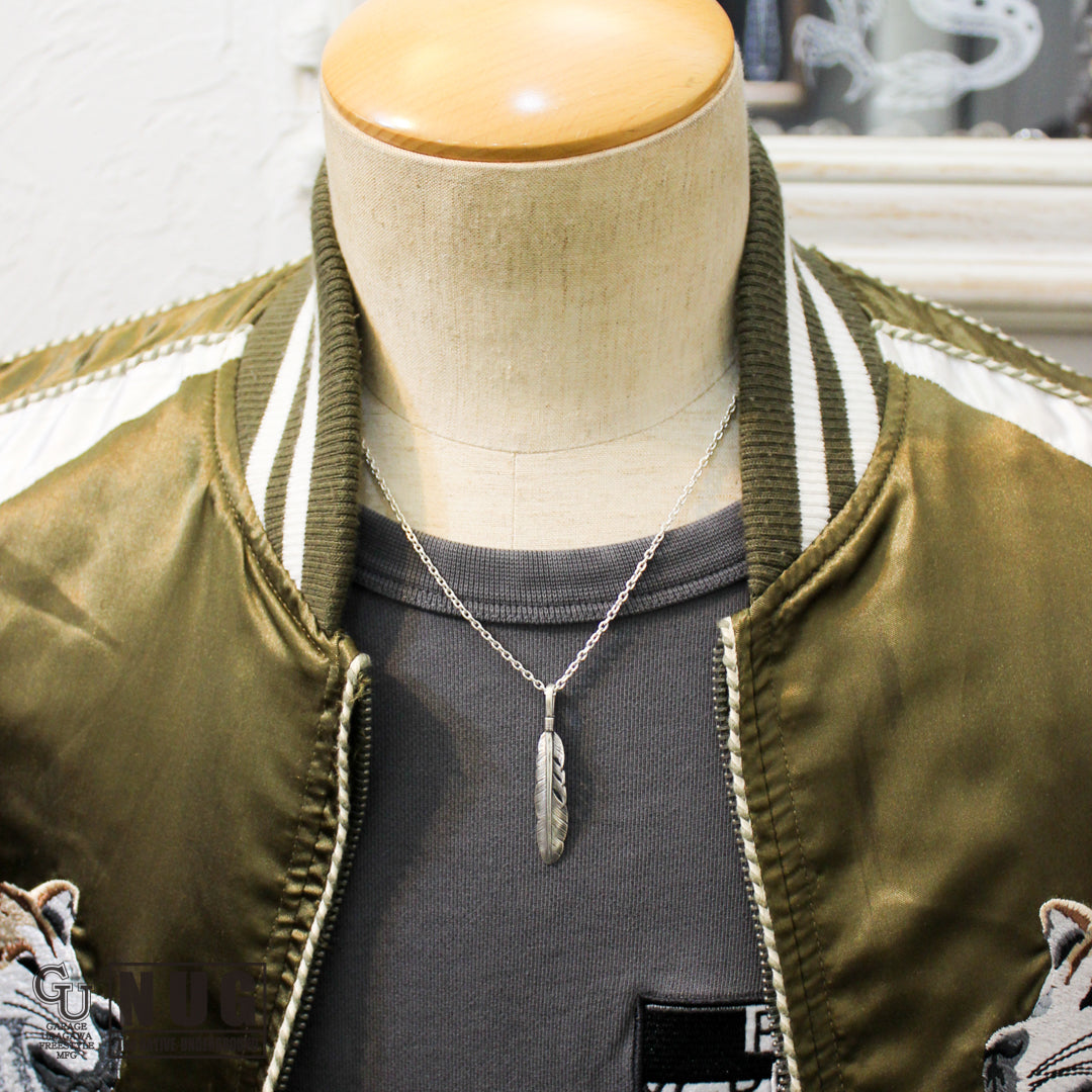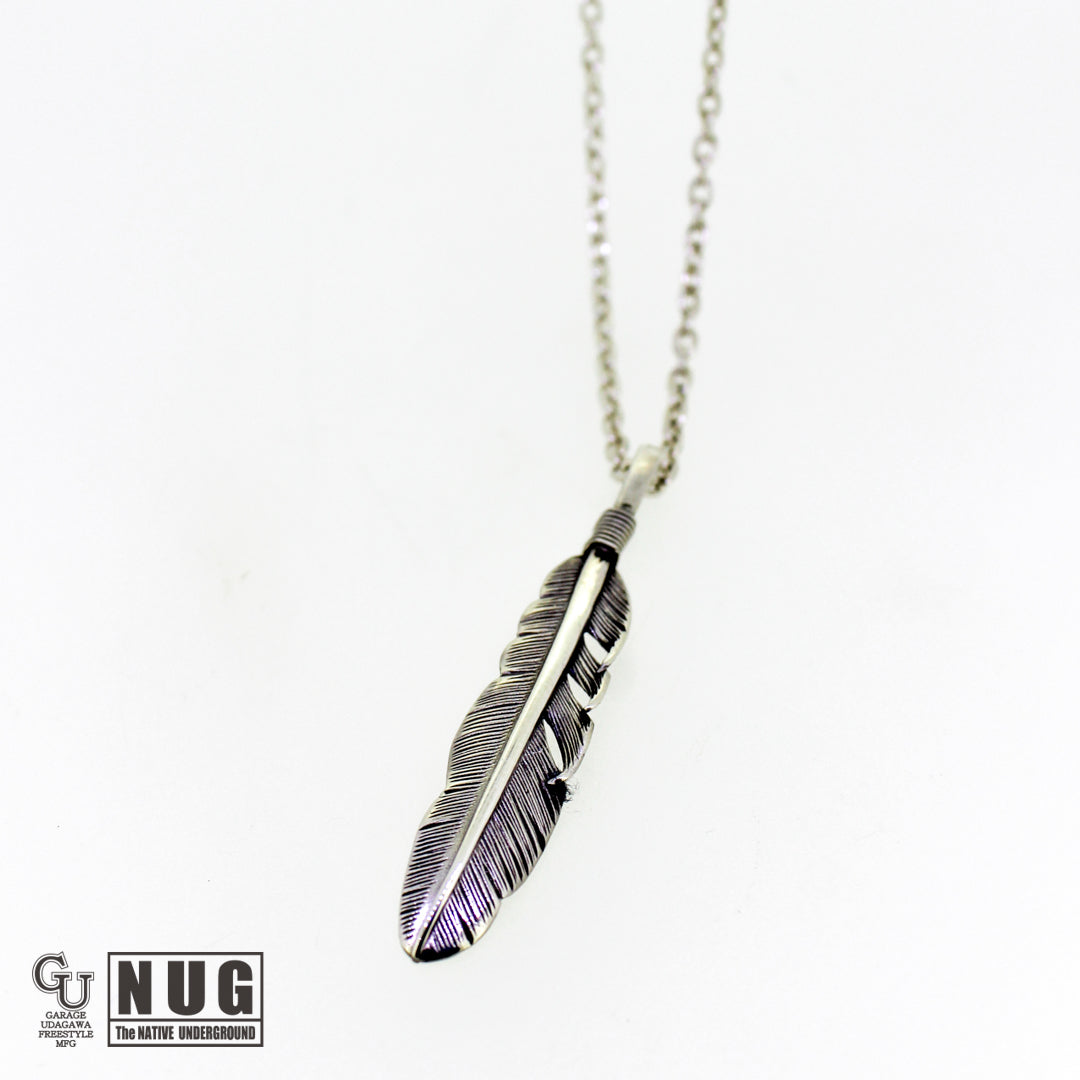 イーグル(鷲)の羽根がモチーフとなるフェザーペンダントヘッドと定番のあずきチェーン(シルバー925製)を組み合わせたガレージウダガワのオリジナルネックレスです。