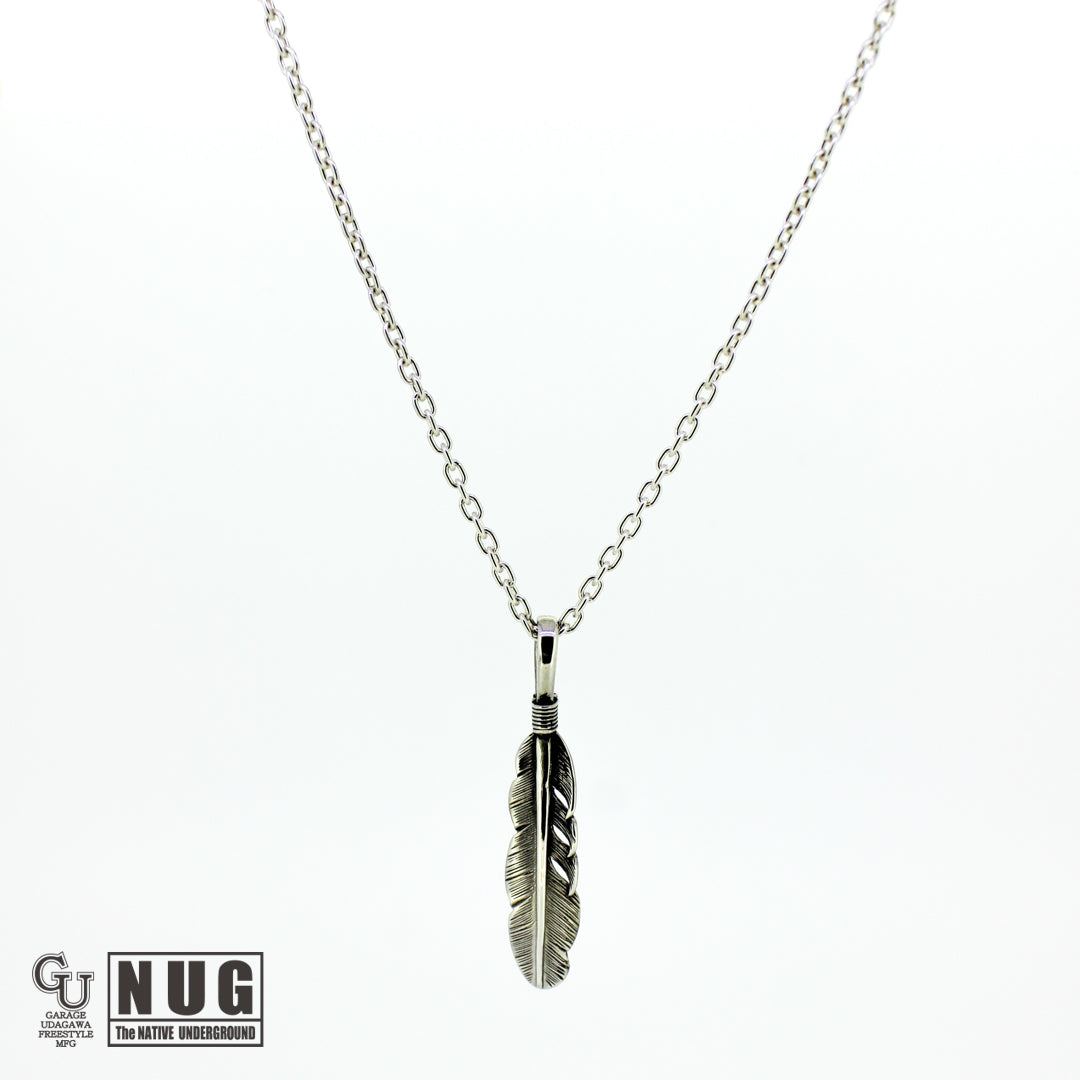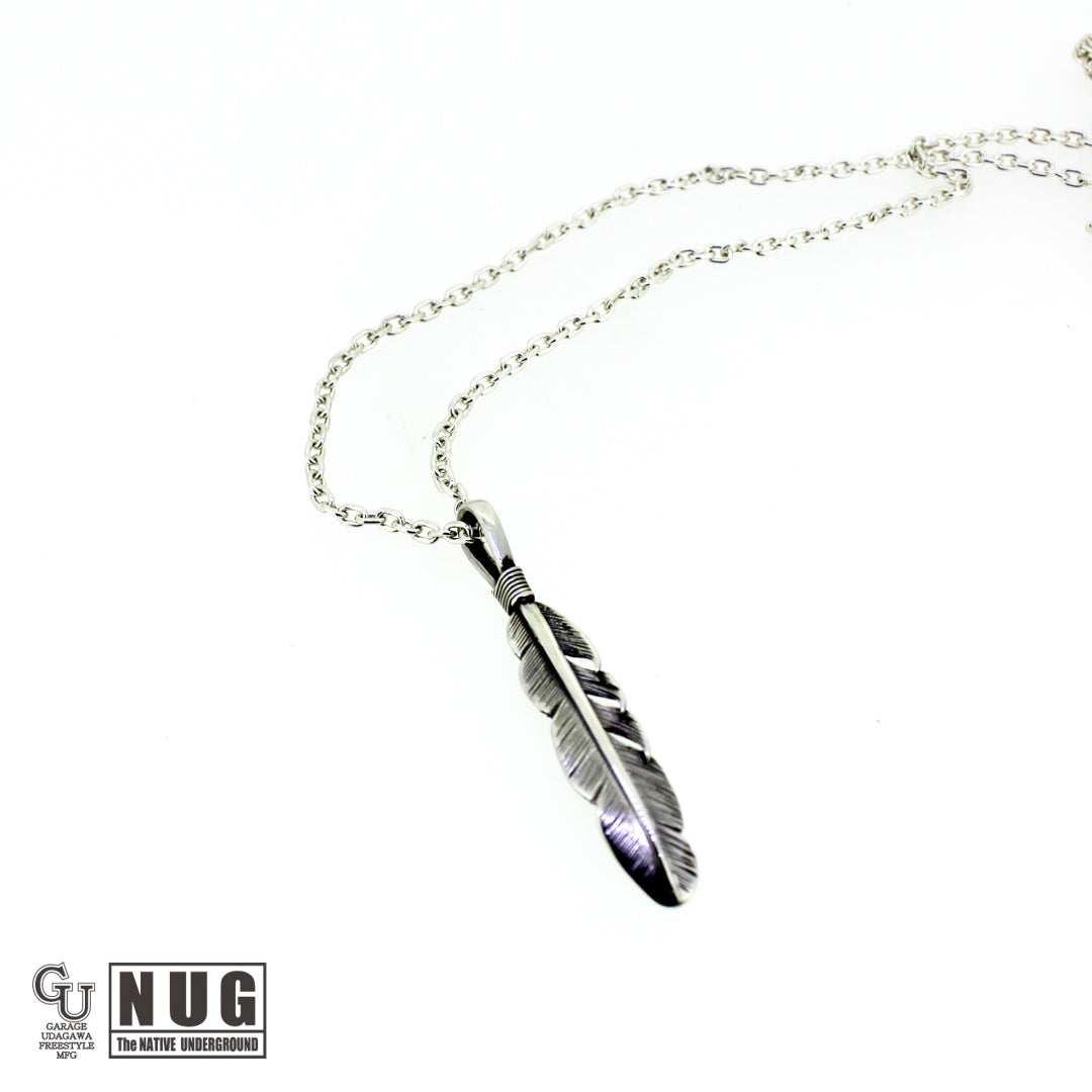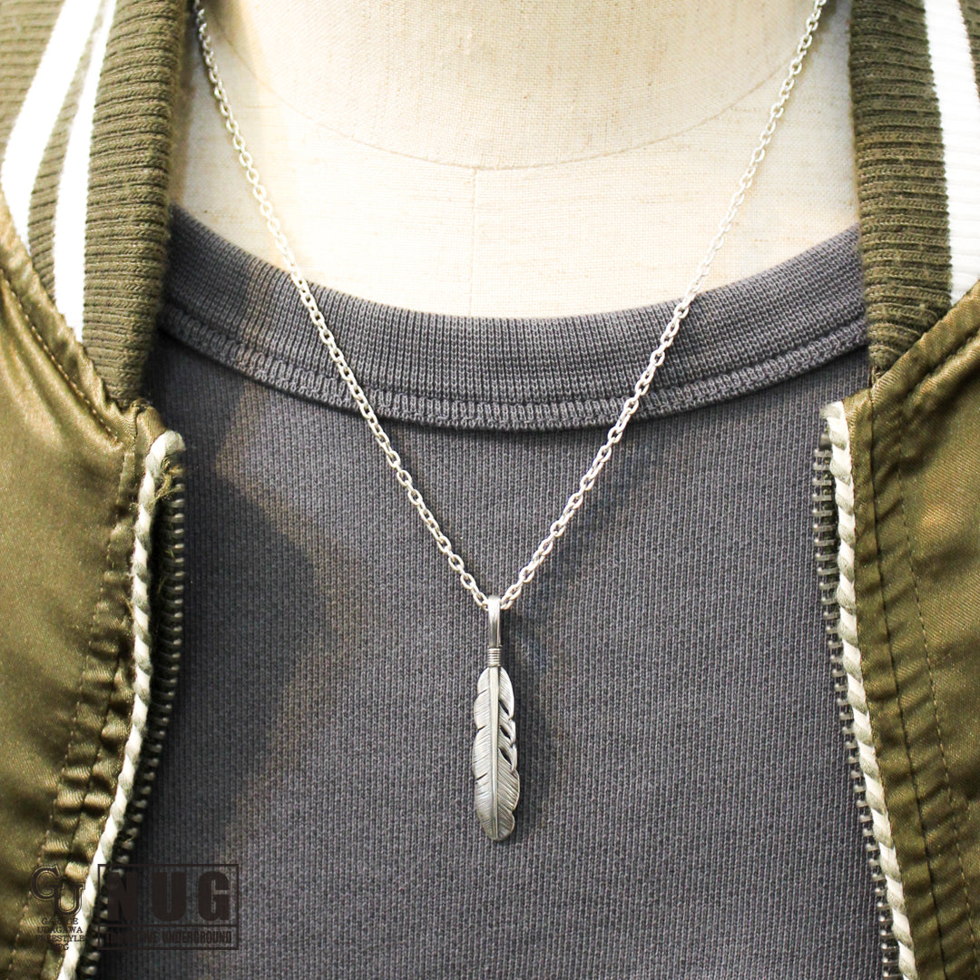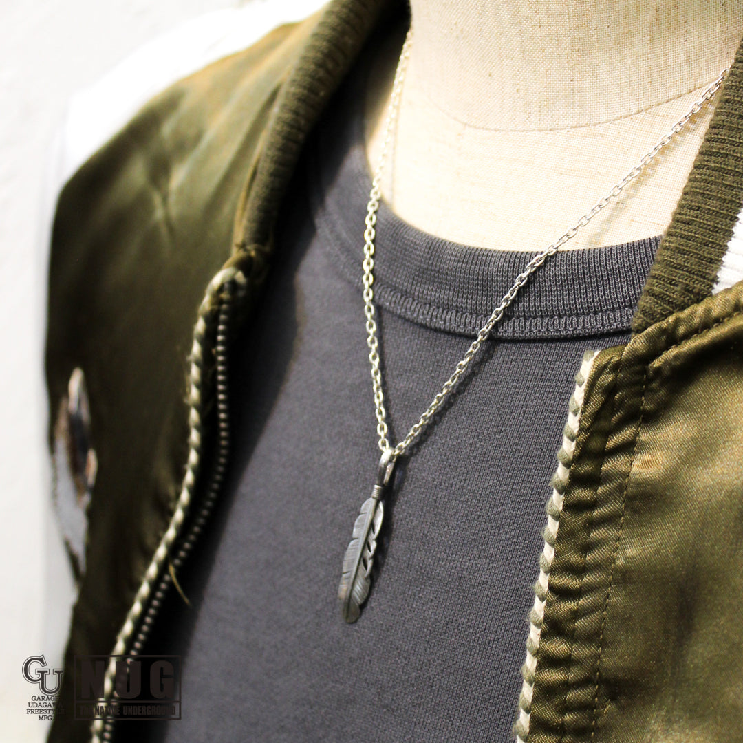 イーグル(鷲)の羽根がモチーフとなるフェザーペンダントヘッドと定番のあずきチェーン(シルバー925製)を組み合わせたガレージウダガワのオリジナルネックレスです。