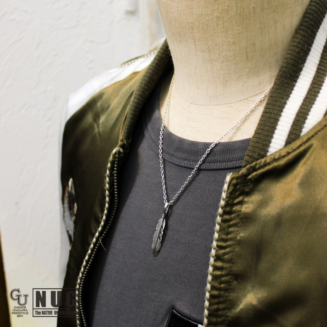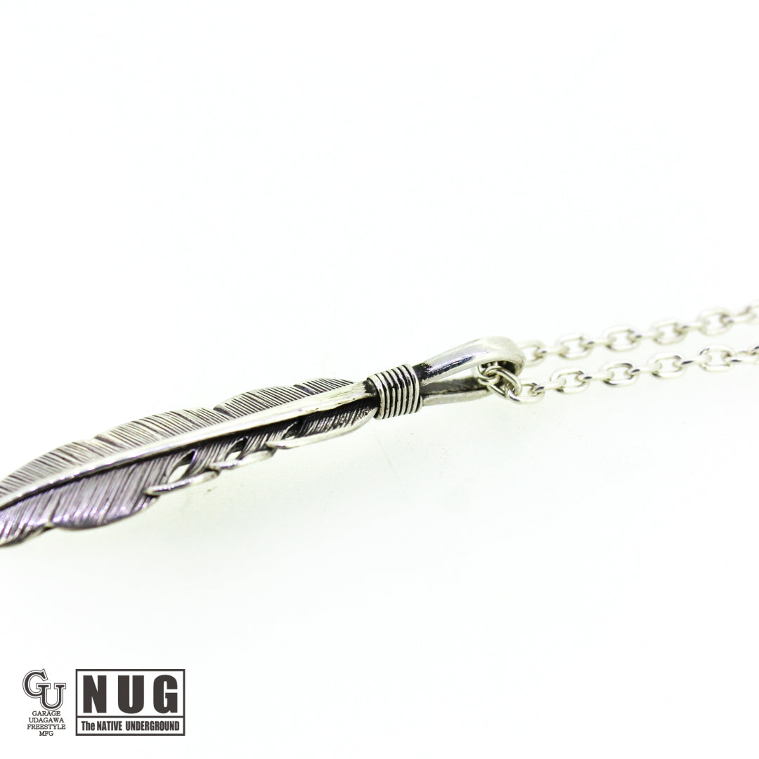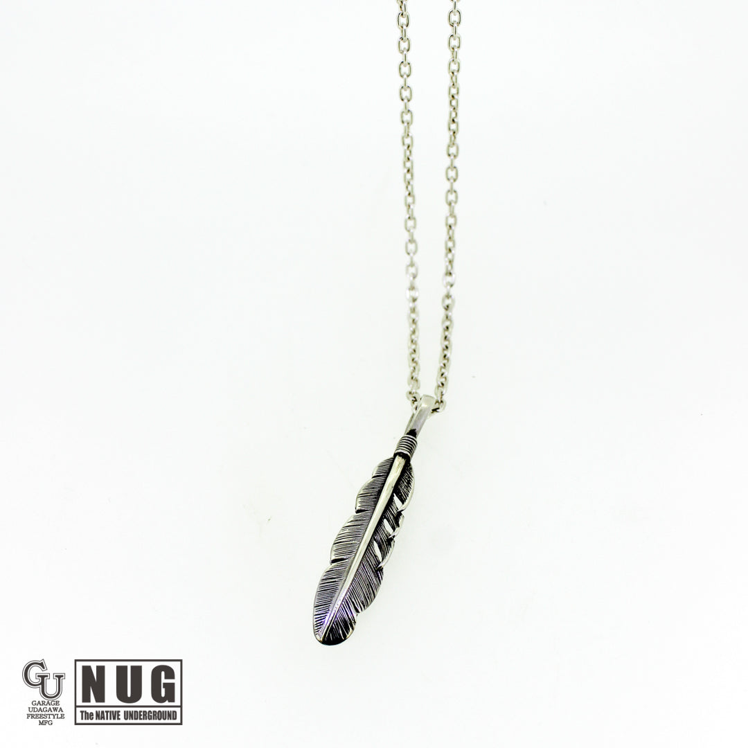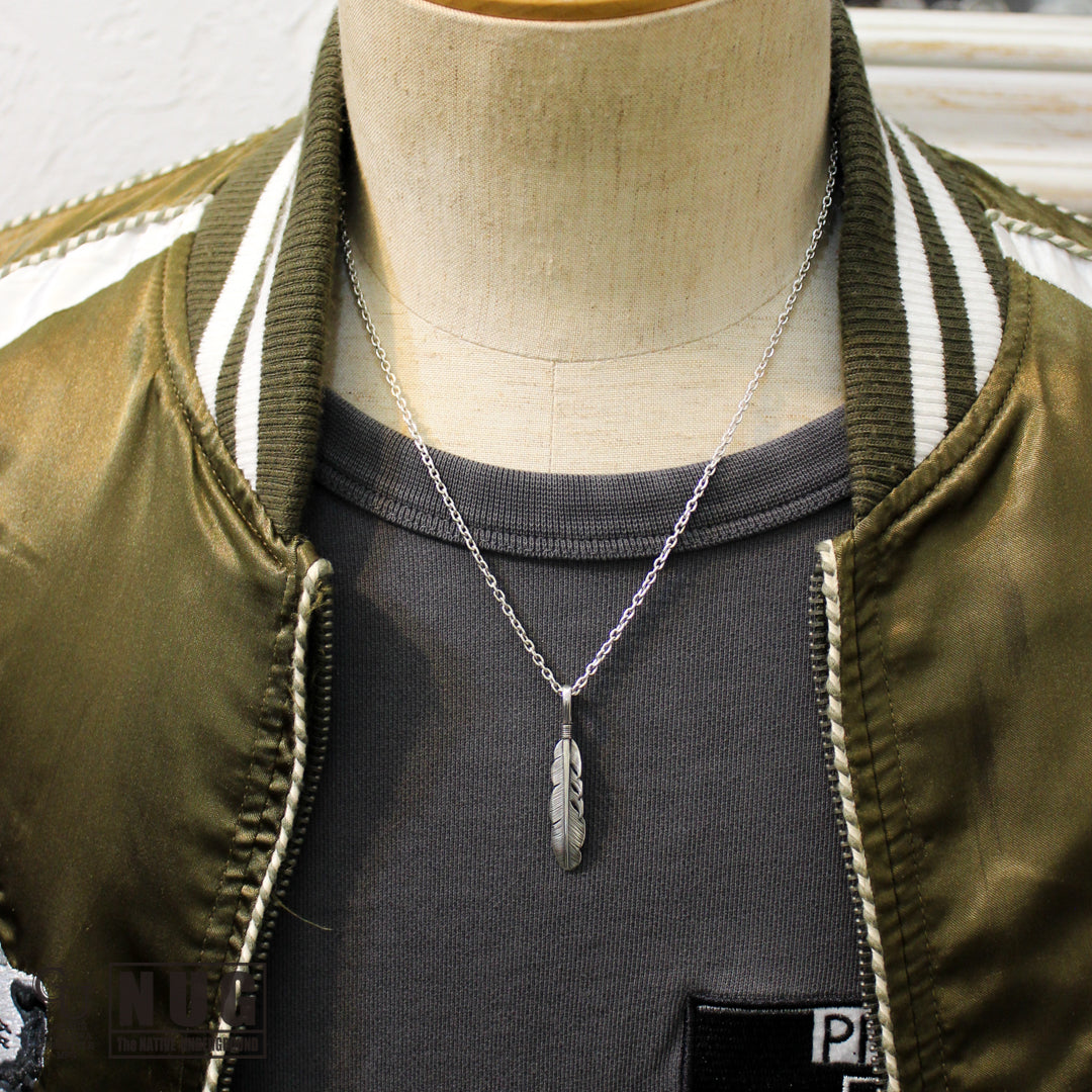 イーグル(鷲)の羽根がモチーフとなるフェザーペンダントヘッドと定番のあずきチェーン(シルバー925製)を組み合わせたガレージウダガワのオリジナルネックレスです。