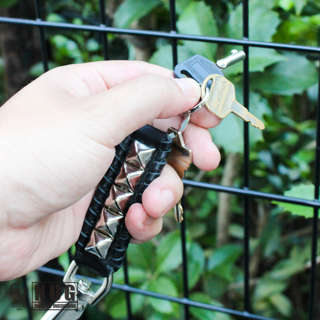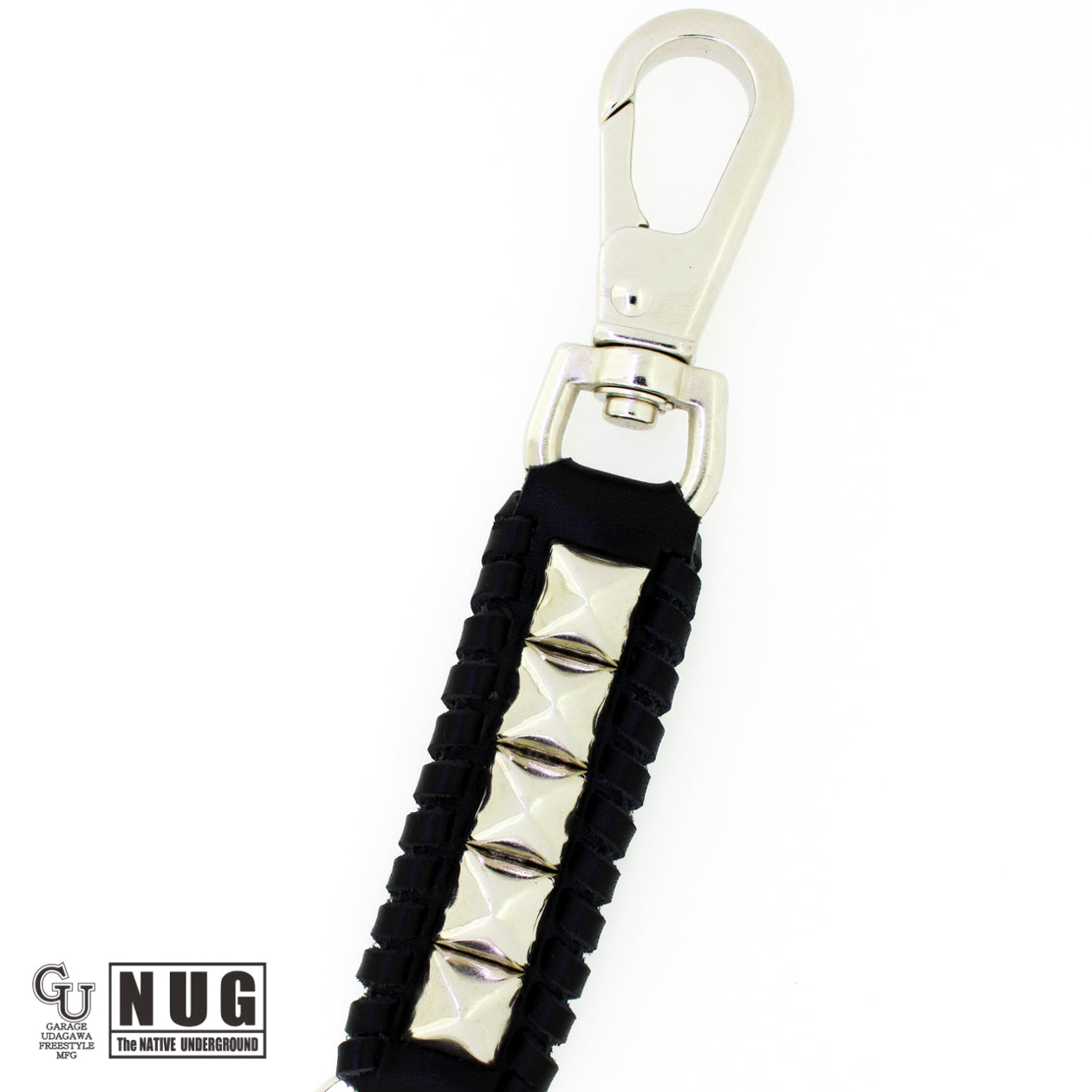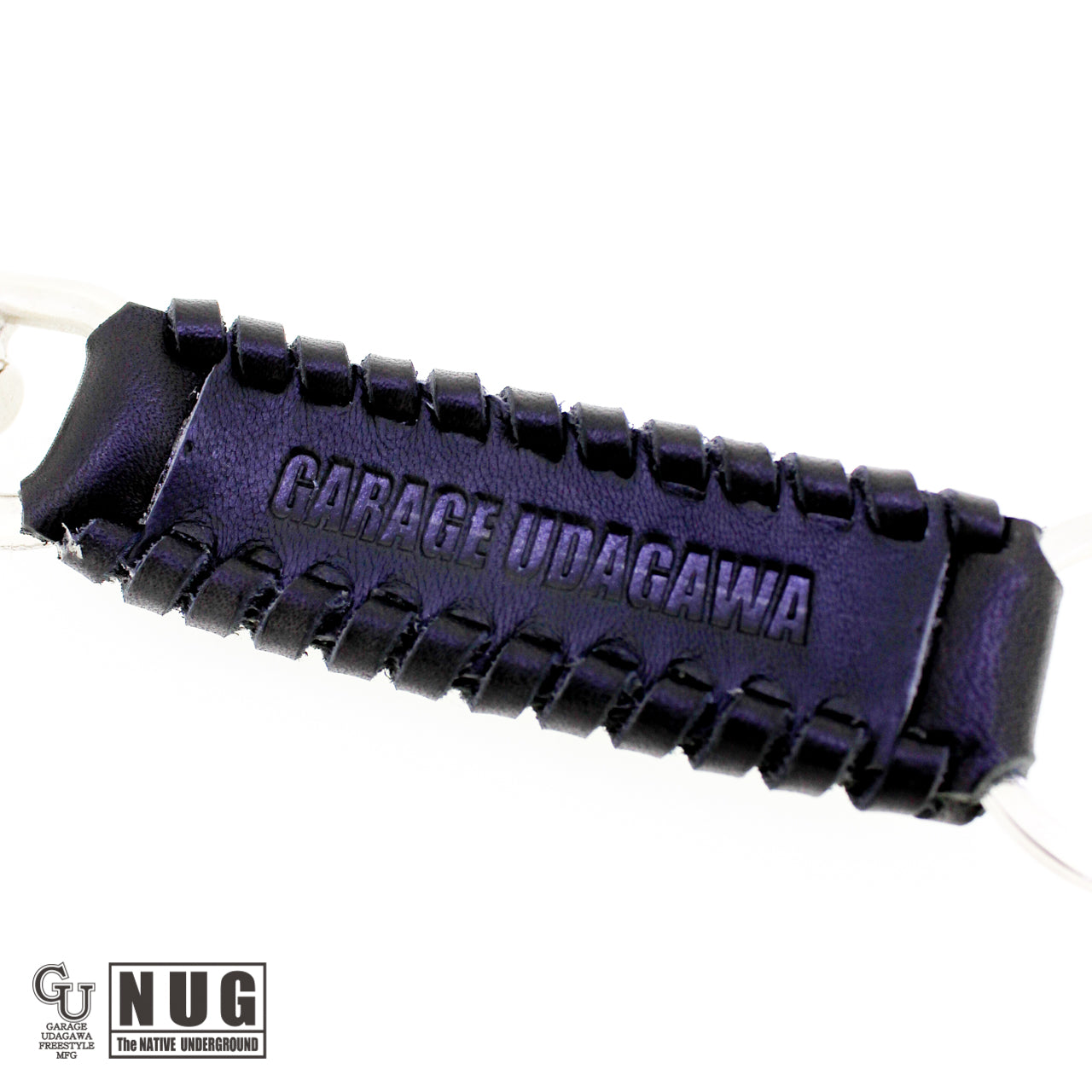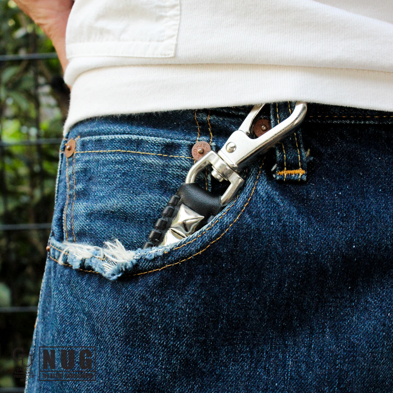 アメリカンオイルレザーにUSA製のピラミッドスタッズ(ニッケル)が打ち込こまれたガレージウダガワオリジナルのキーホルダーです。