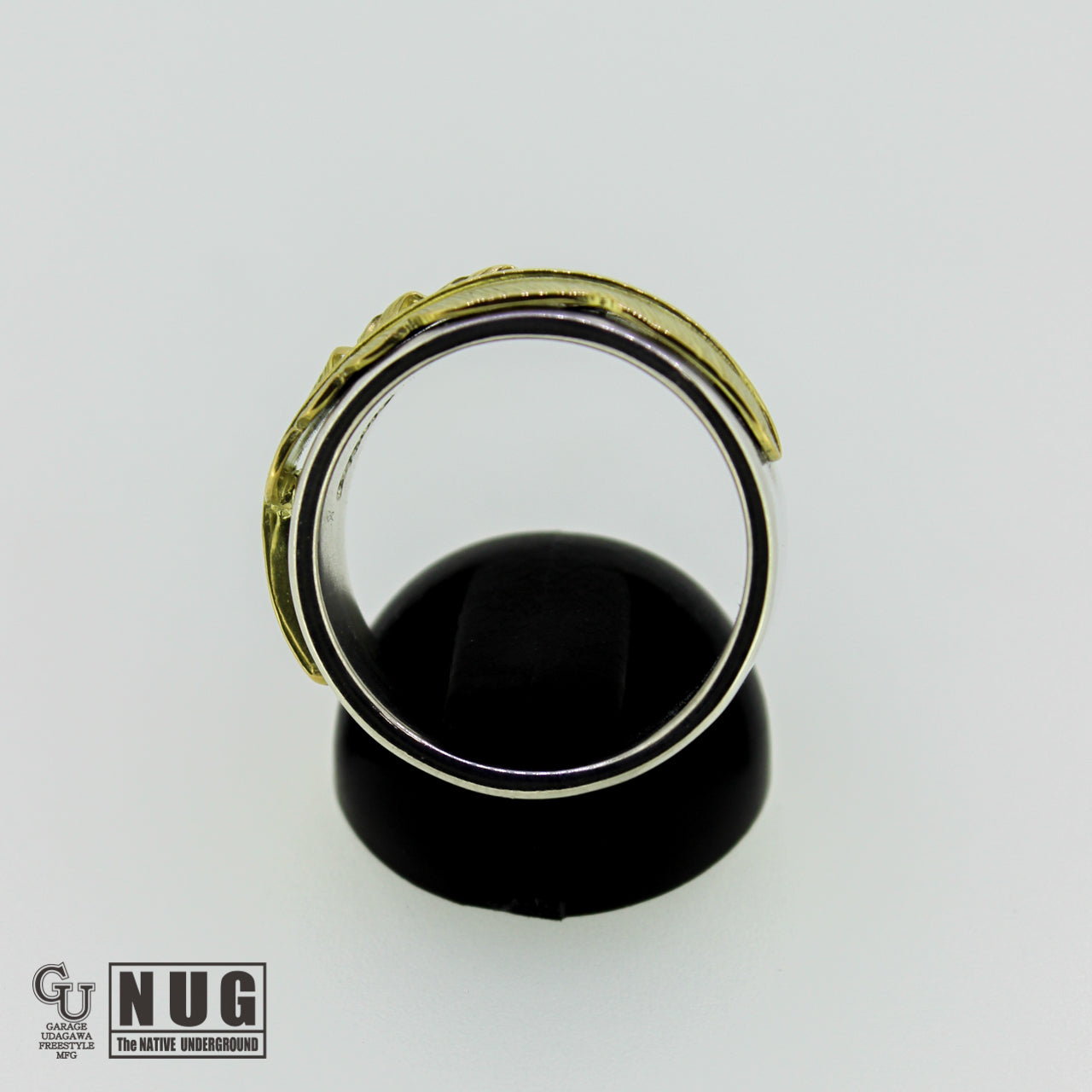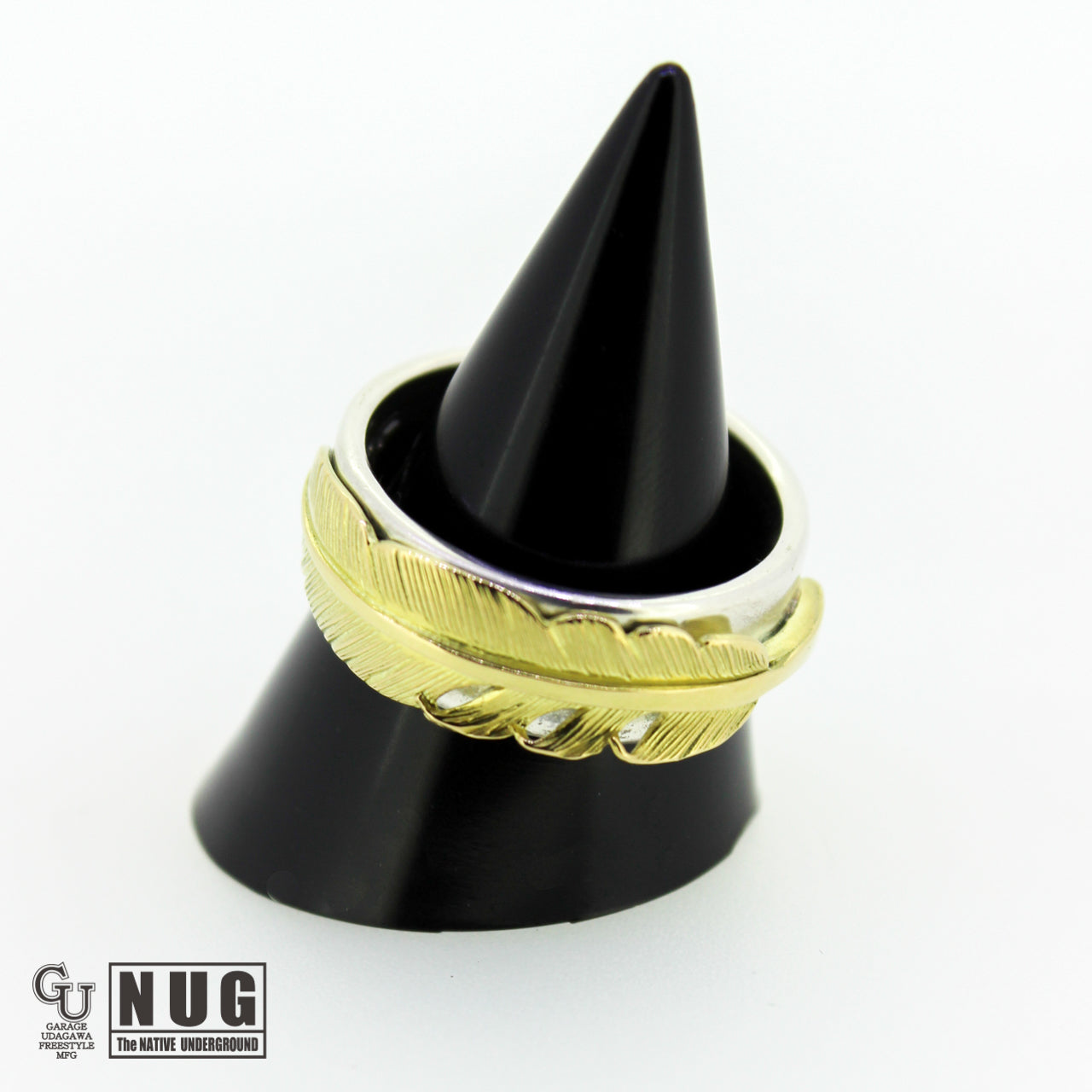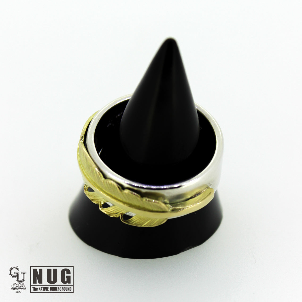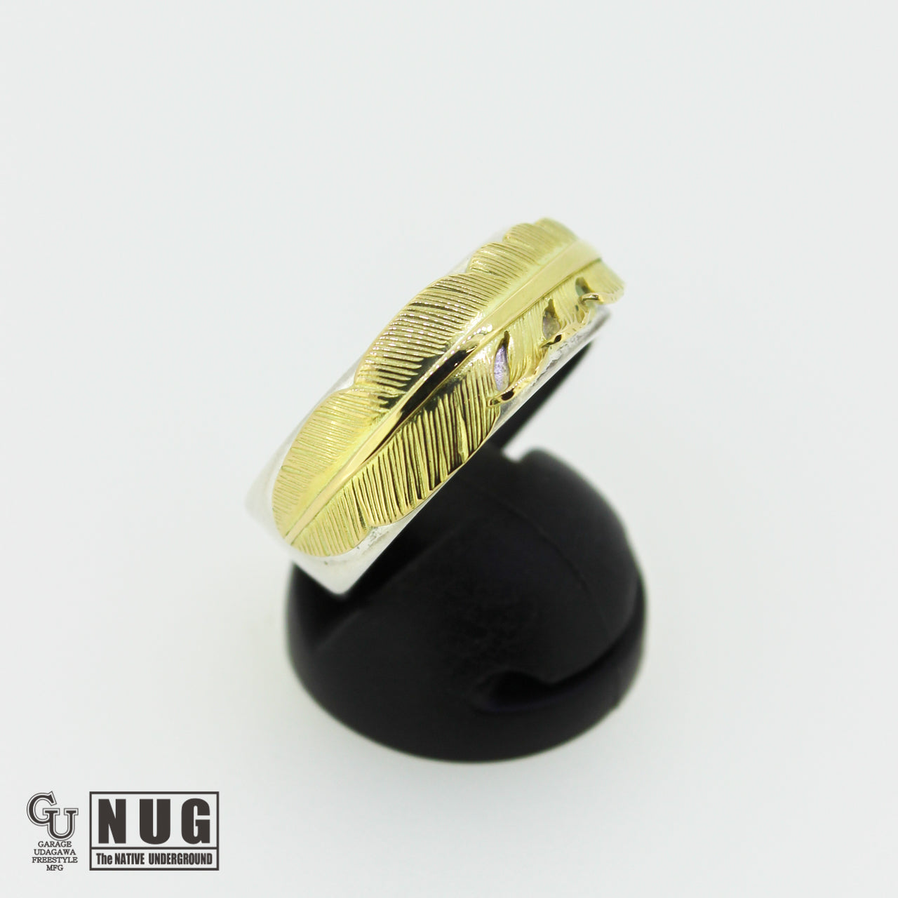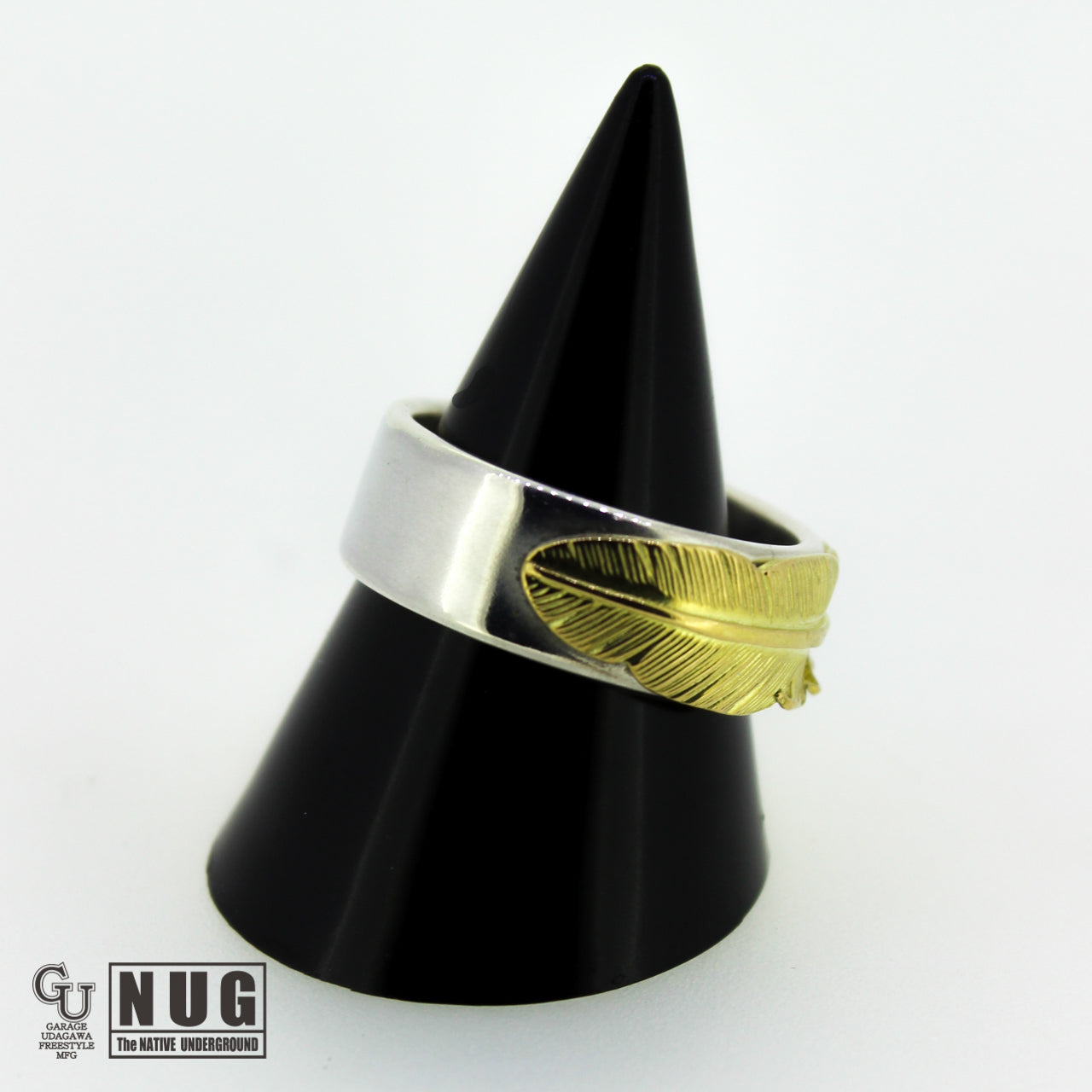 シルバー950製のフラットリングにK18(18金)のフェザーを組み合わせたガレージウダガワのオリジナルリングです。